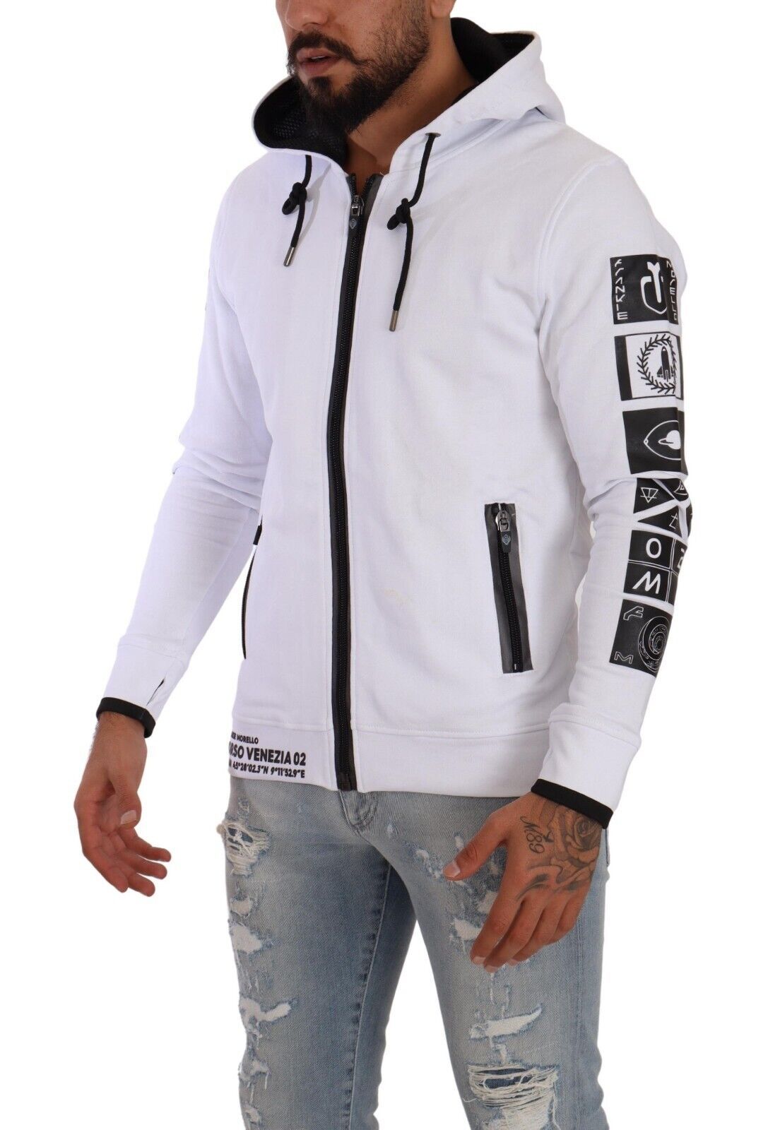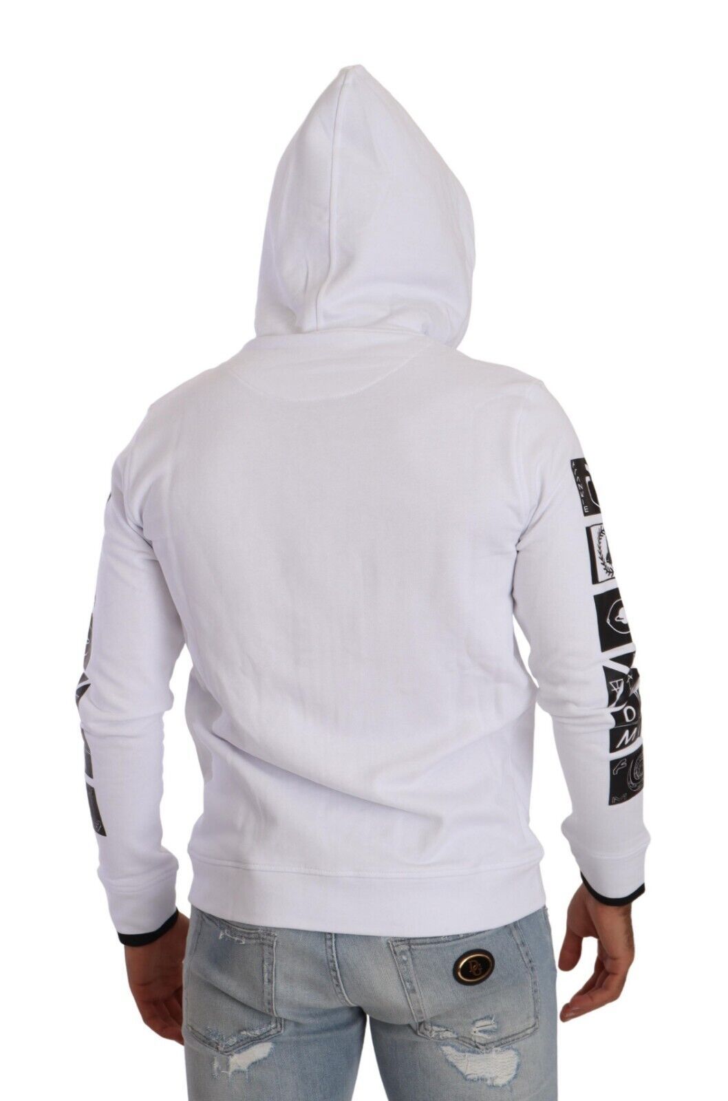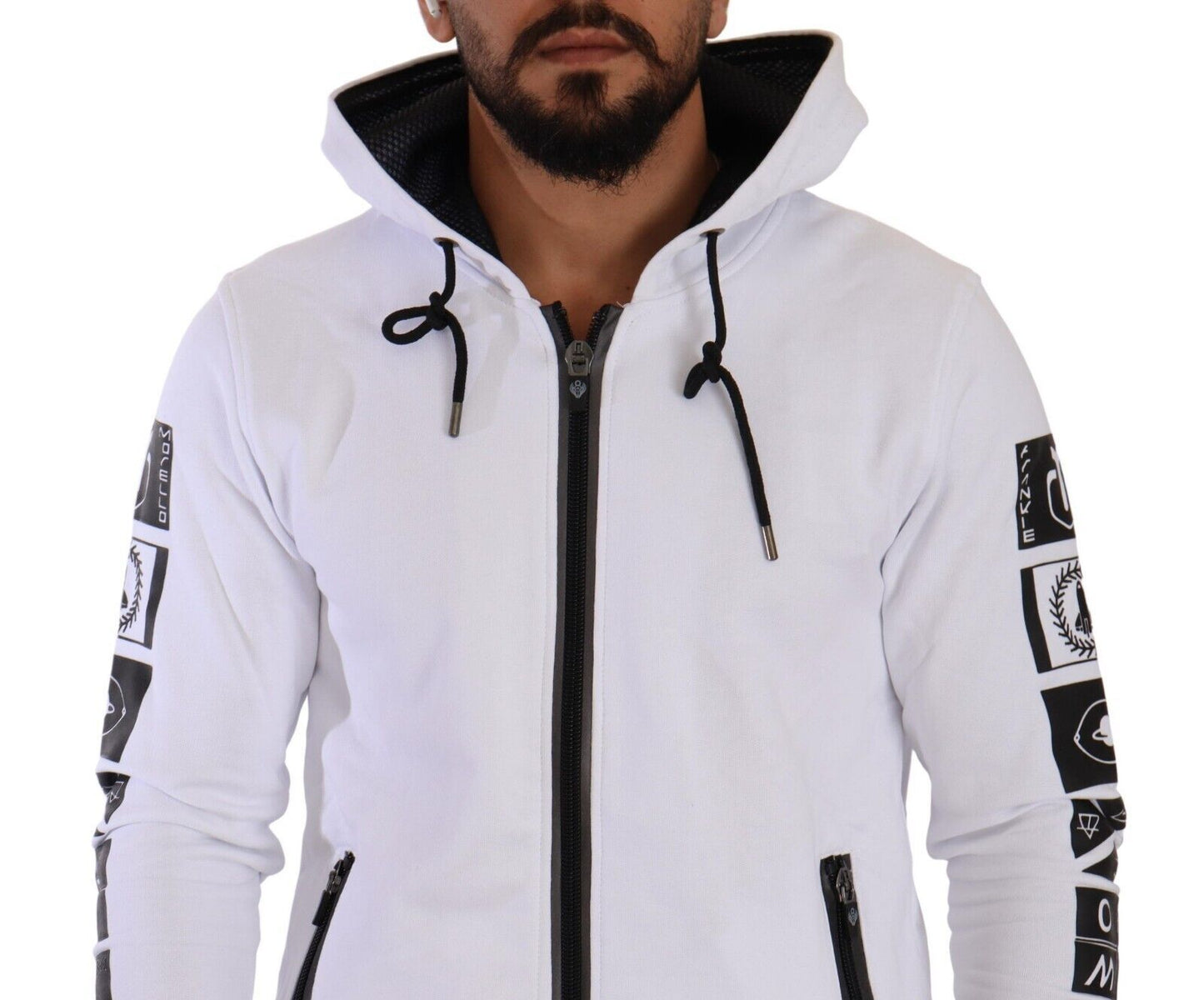 Step out in style with this pristine white hooded sweatshirt jacket, perfect for those breezy days or casual nights. Made from luxuriously soft 100% cotton, this jacket from Frankie Morello offers both comfort and high-end fashion flair. Featuring a full zipper closure for ease and versatility, it’s designed to impress with its subtle yet distinctive logo detailing.