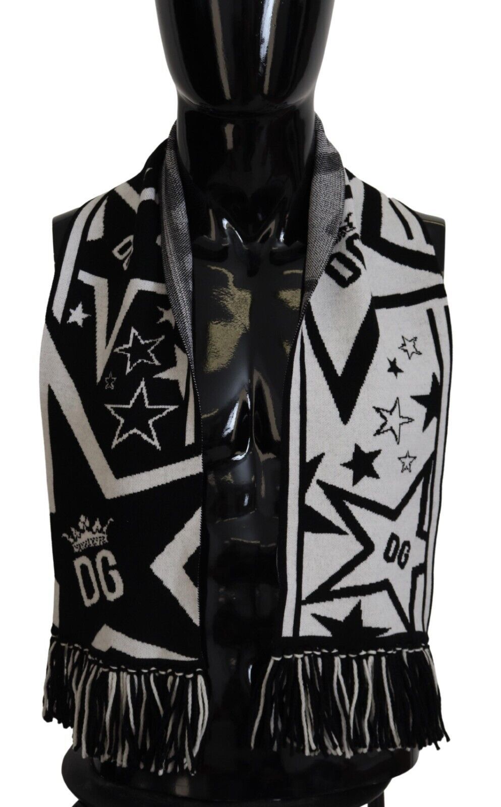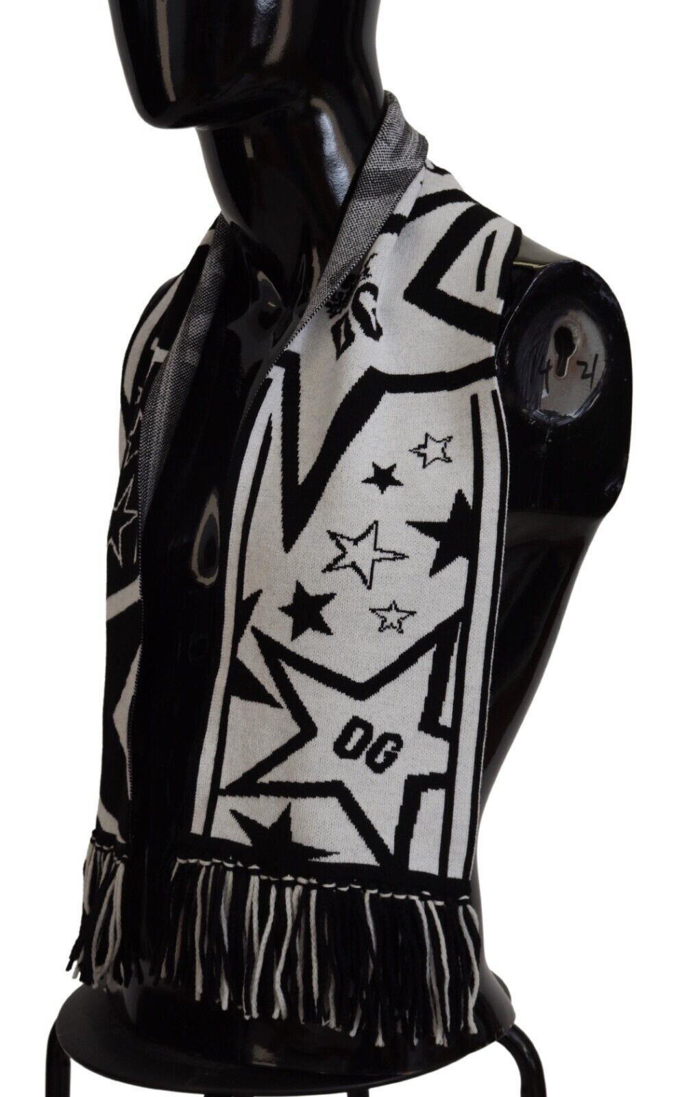 Elegant Wool-Cashmere Men's Scarf - B/W Print