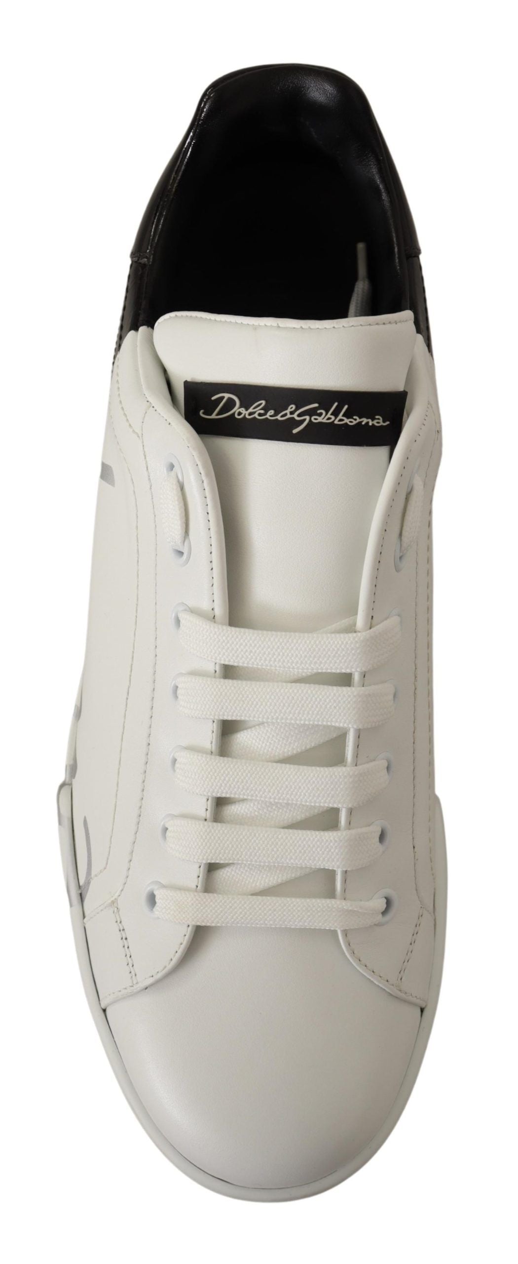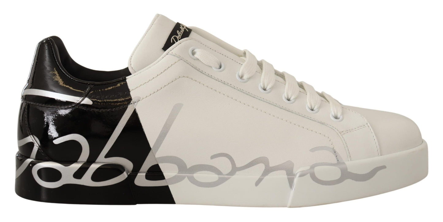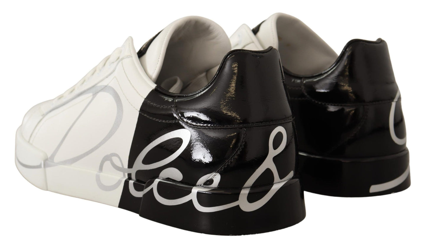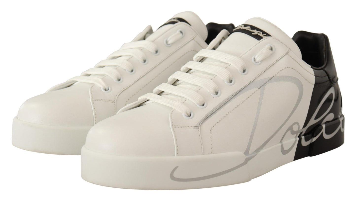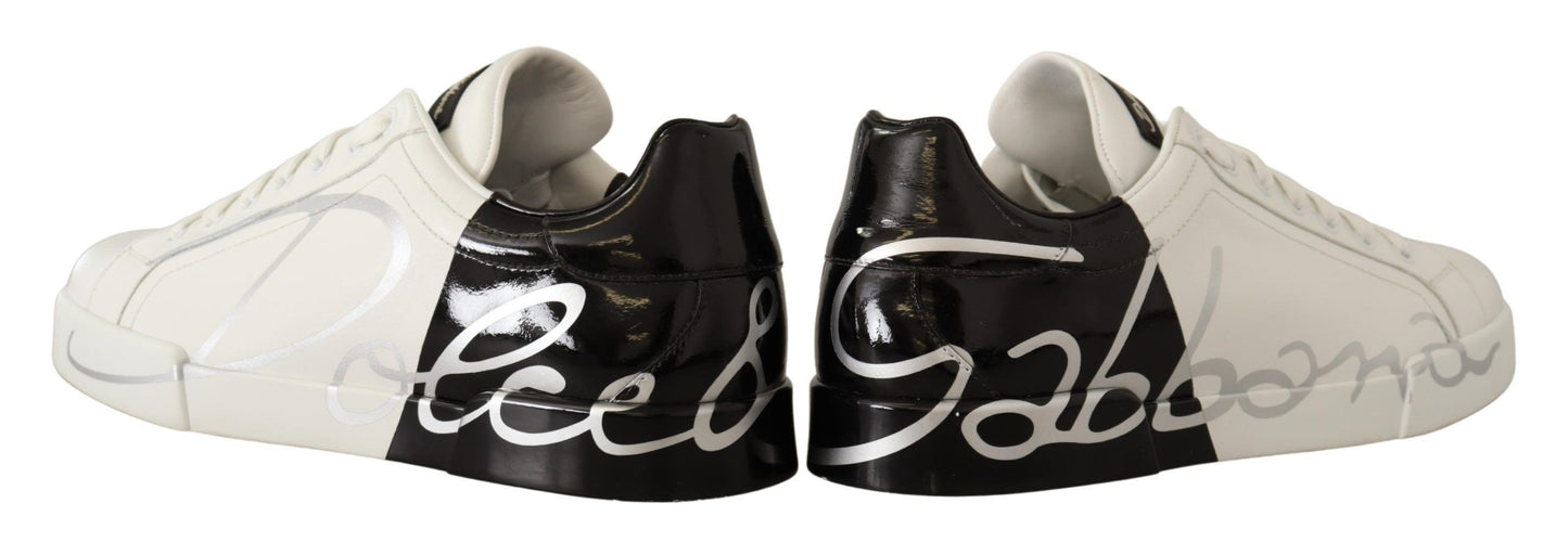 White Black Leather Logo Print Mens Sneakers Shoes