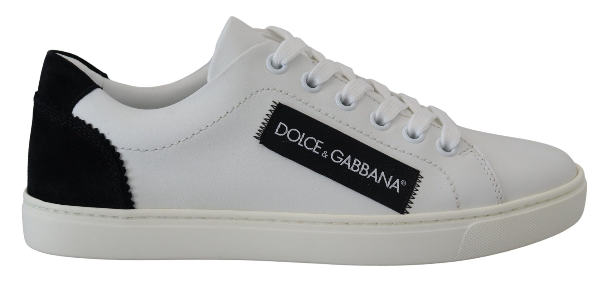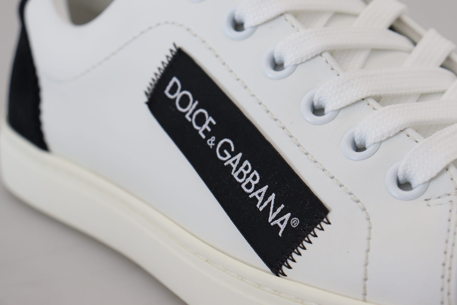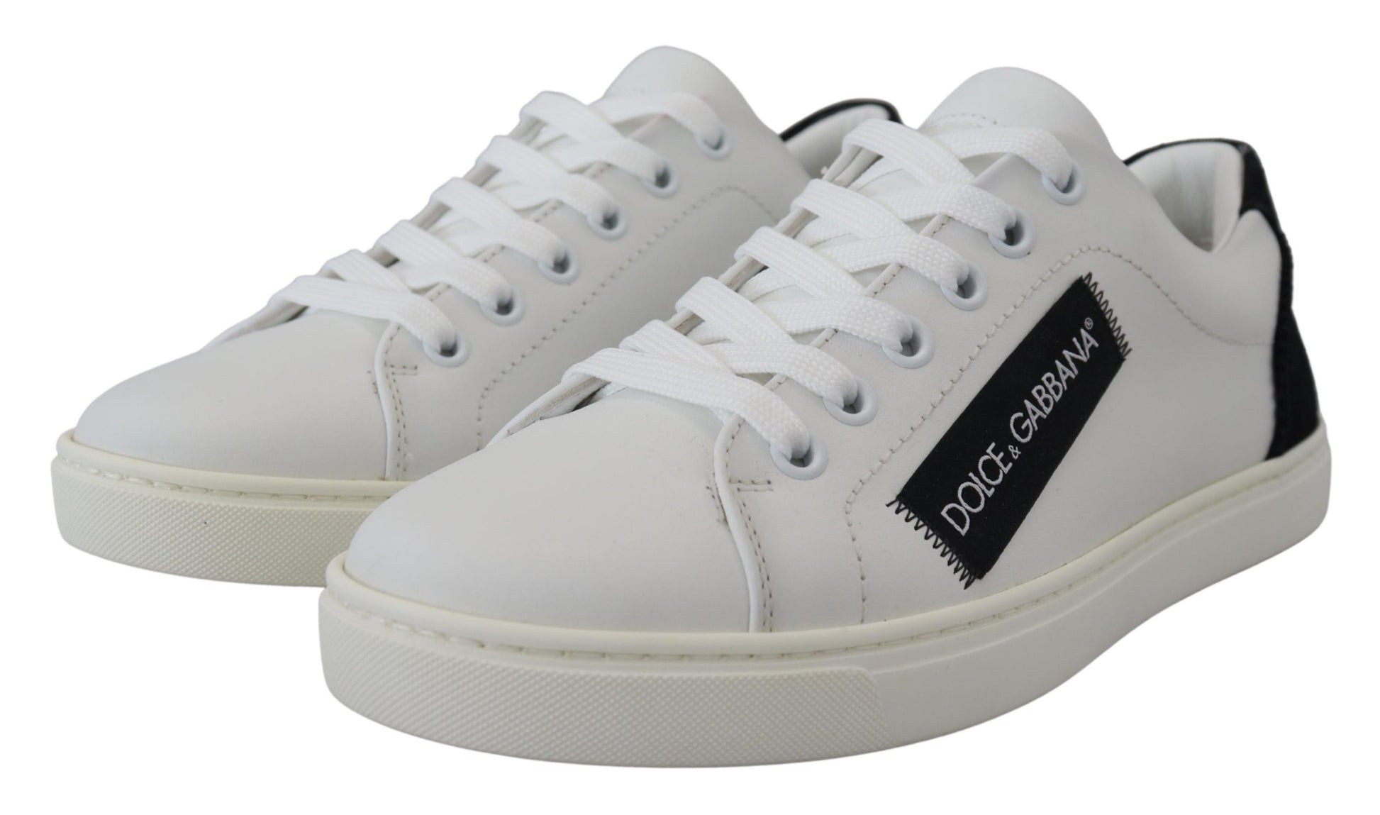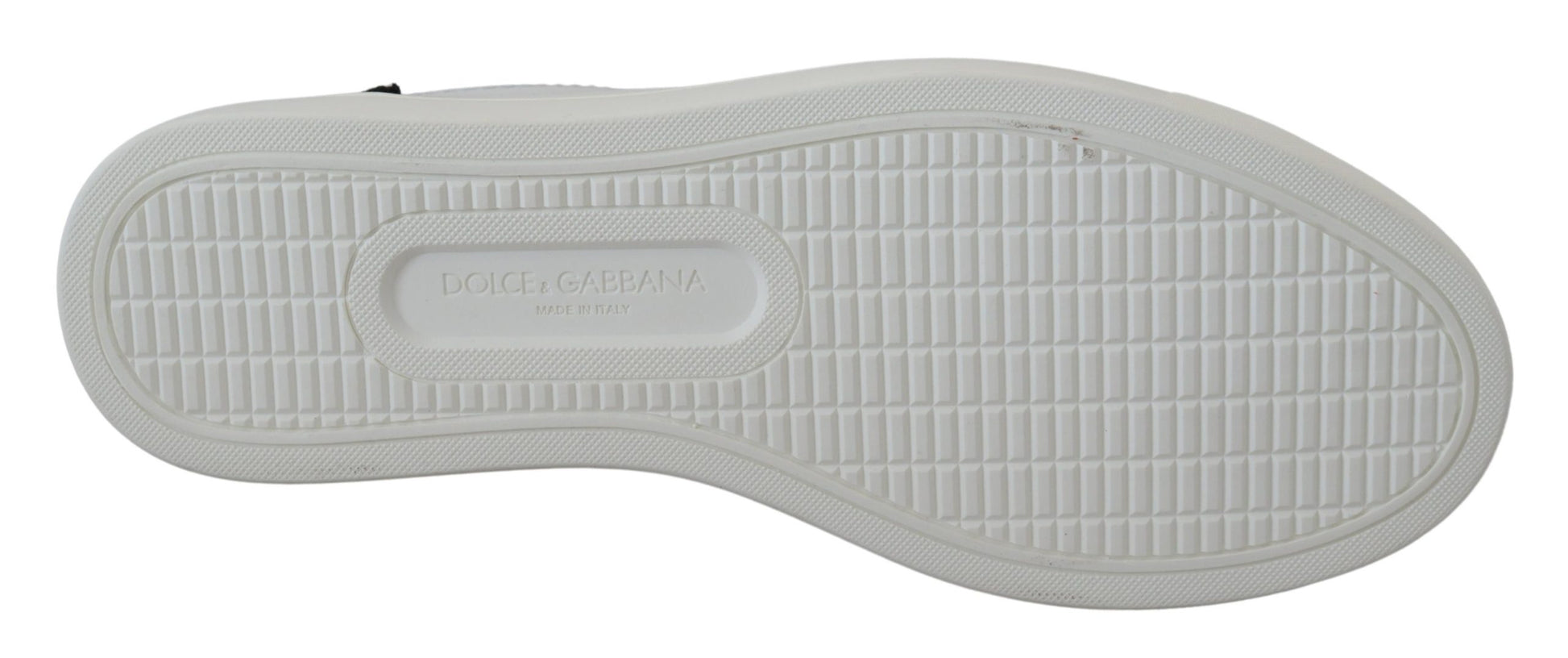 Step into luxury with these gorgeous new white lace-up sneakers, a perfect blend of sophistication and style, created by the renowned fashion house Dolce & Gabbana. These authentic sneakers provide not only unmatched comfort with their rubber soles but also a touch of elegance to any casual ensemble. Crafted with premium materials and attention to detail, they feature the iconic logo that adds an exclusive edge to your footwear collection. Made in Italy, these sneakers are a testament to classic design and contemporary fashion sensibilities.