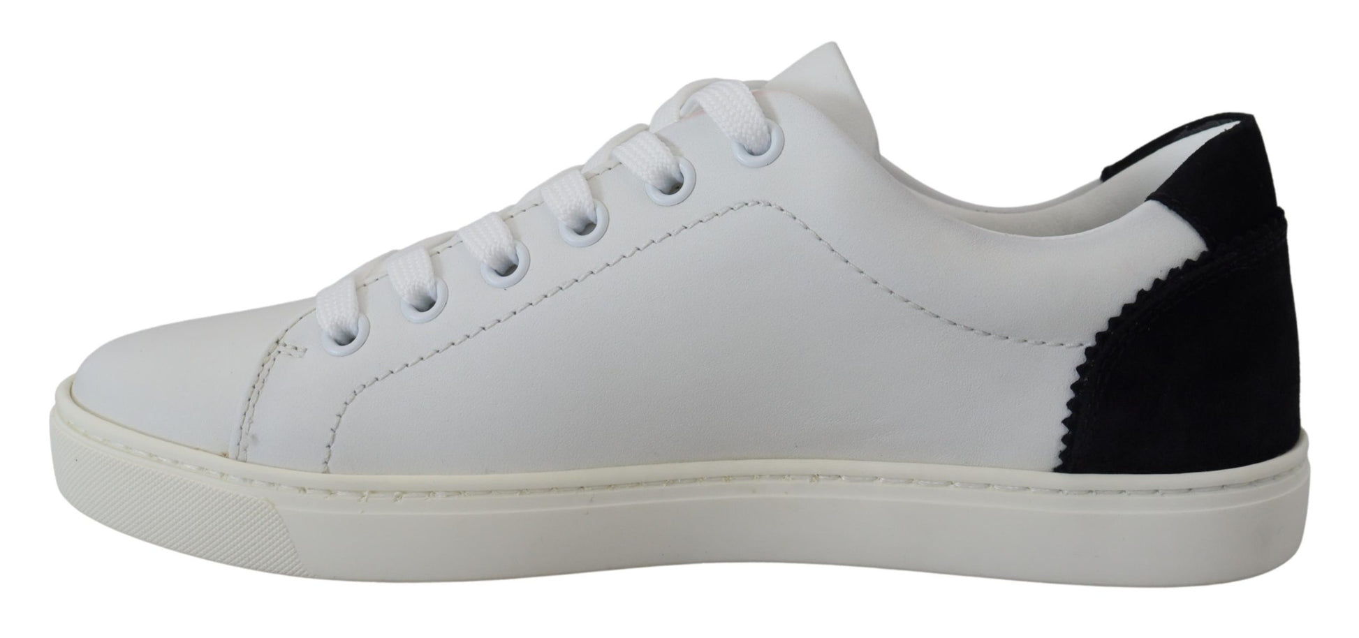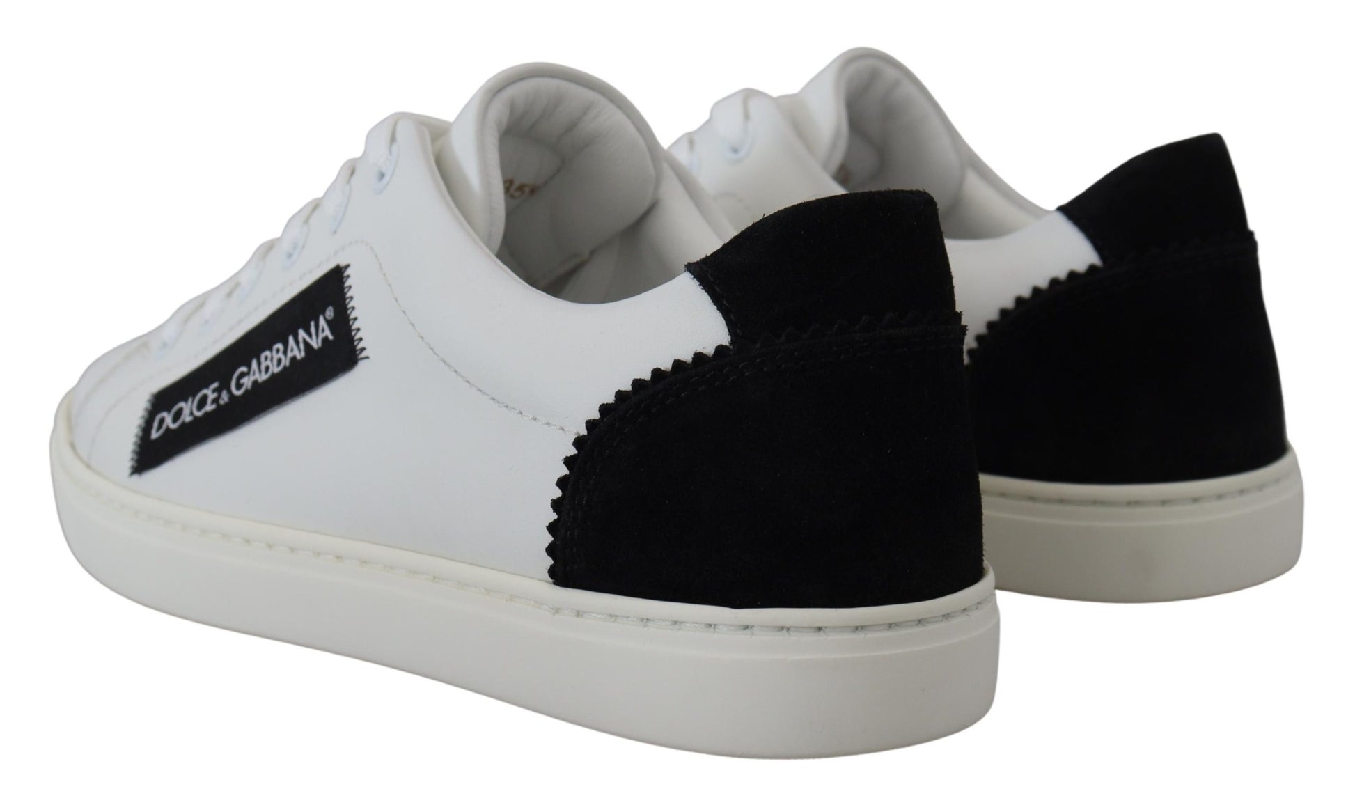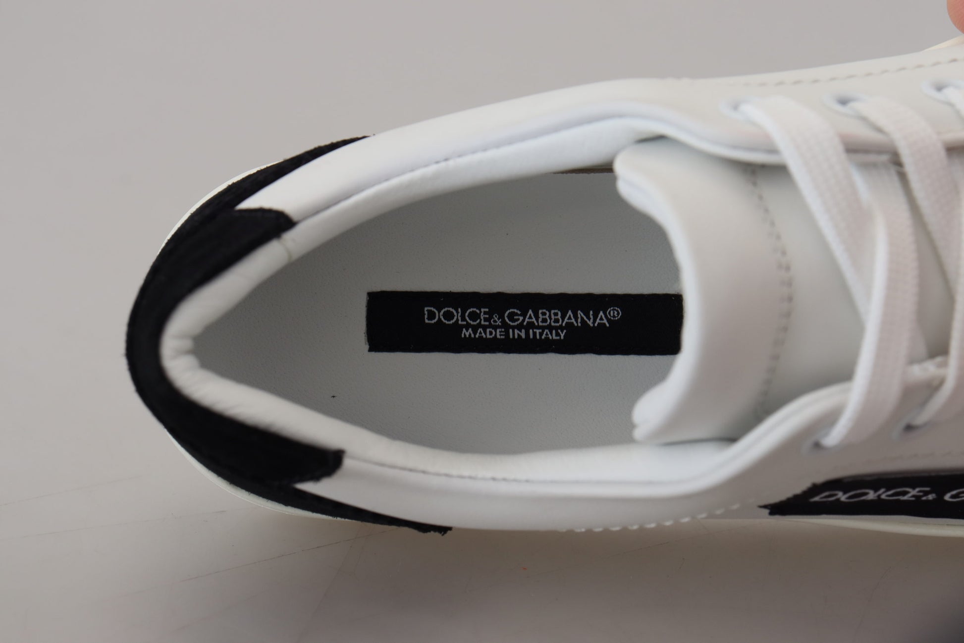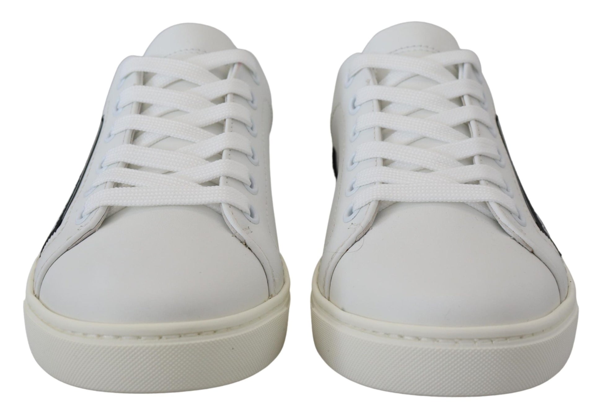 Step into luxury with these gorgeous new white lace-up sneakers, a perfect blend of sophistication and style, created by the renowned fashion house Dolce & Gabbana. These authentic sneakers provide not only unmatched comfort with their rubber soles but also a touch of elegance to any casual ensemble. Crafted with premium materials and attention to detail, they feature the iconic logo that adds an exclusive edge to your footwear collection. Made in Italy, these sneakers are a testament to classic design and contemporary fashion sensibilities.