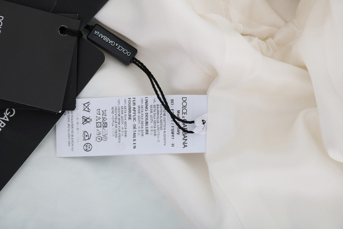 Embrace timeless elegance with Dolce & Gabbana’s stunning Bolero Jacket, a luxurious addition to any sophisticated wardrobe. This gorgeous jacket, brand new with tags, features a classic white color enhanced by a banana leaf print and a sumptuous trim of genuine mink fur, offering an unparalleled touch of luxury and style.