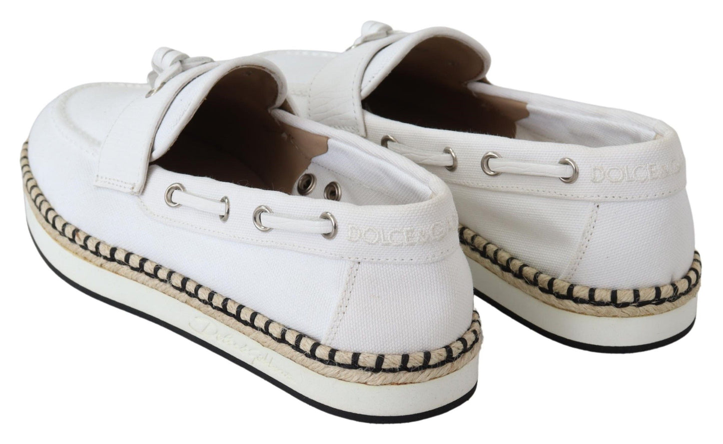 Enrich your footwear collection with the quintessence of luxury — these pristine white loafers by Dolce & Gabbana. Crafted with the finest canvas and leather, they boast not just unparalleled style but also comfort, underscored by a supple rubber sole. These loafers are more than just shoes; they’re a testament to Italian craftsmanship and a symbol of sophisticated elegance.