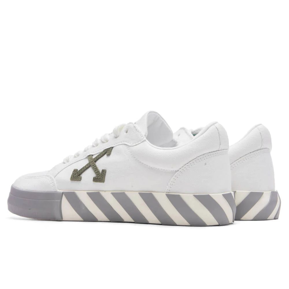 Step up your sneaker game with these stylish low-top Vulcanized Canvas kicks. The sleek suede upper blends effortlessly with a practical lace-up closure, complemented by the iconic zip tie tag. Statement arrows adorn the sides, while distinct branding marks the tongue label and insole. Finished with a classic vulcanized midsole and durable rubber outsole, these sneakers are the epitome of urban-chic foot fashion.