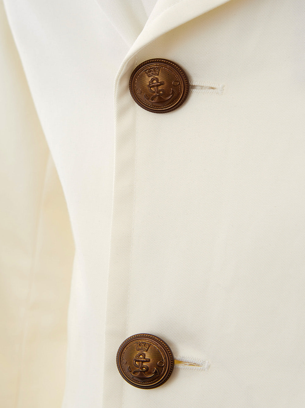 Immerse yourself in the epitome of elegance with this brand new, tag-equipped Sealup cotton jacket. Designed with a sharp eye for detail, it features a double-breasted front with striking bronzed Marine-themed buttons. This piece is a harmonious blend of style and comfort with practical side pockets, a chic Sailor accent on the sleeve, and a convenient inner pocket. The inner lining adds an extra layer of sophistication to this Italian-made masterpiece. Perfect for any fashion-conscious individual seeking to make a statement.