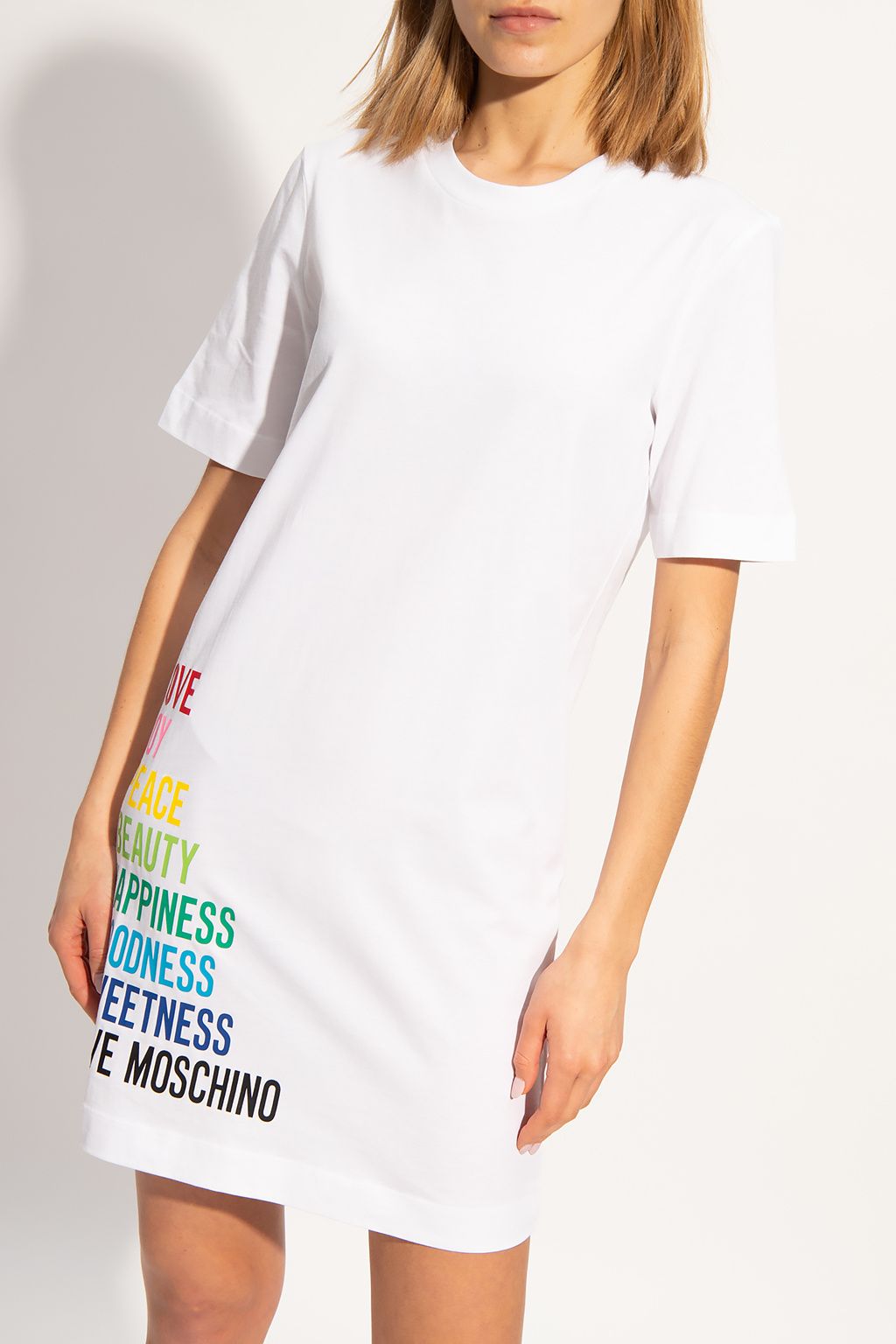Embrace casual sophistication with this pure cotton dress, featuring a classic ribbed crew neck and a playful logo print on the bottom. The short sleeves make it perfect for sunny days or can easily be layered for a stylish transition to cooler evenings.