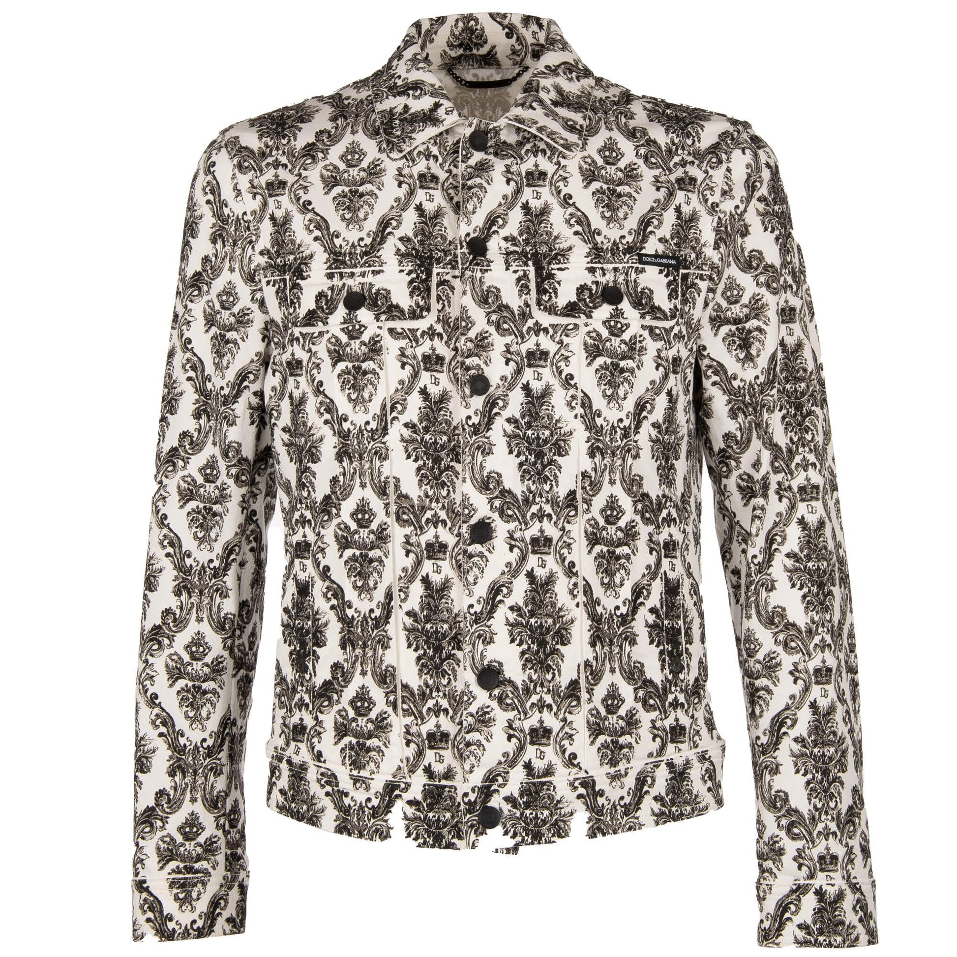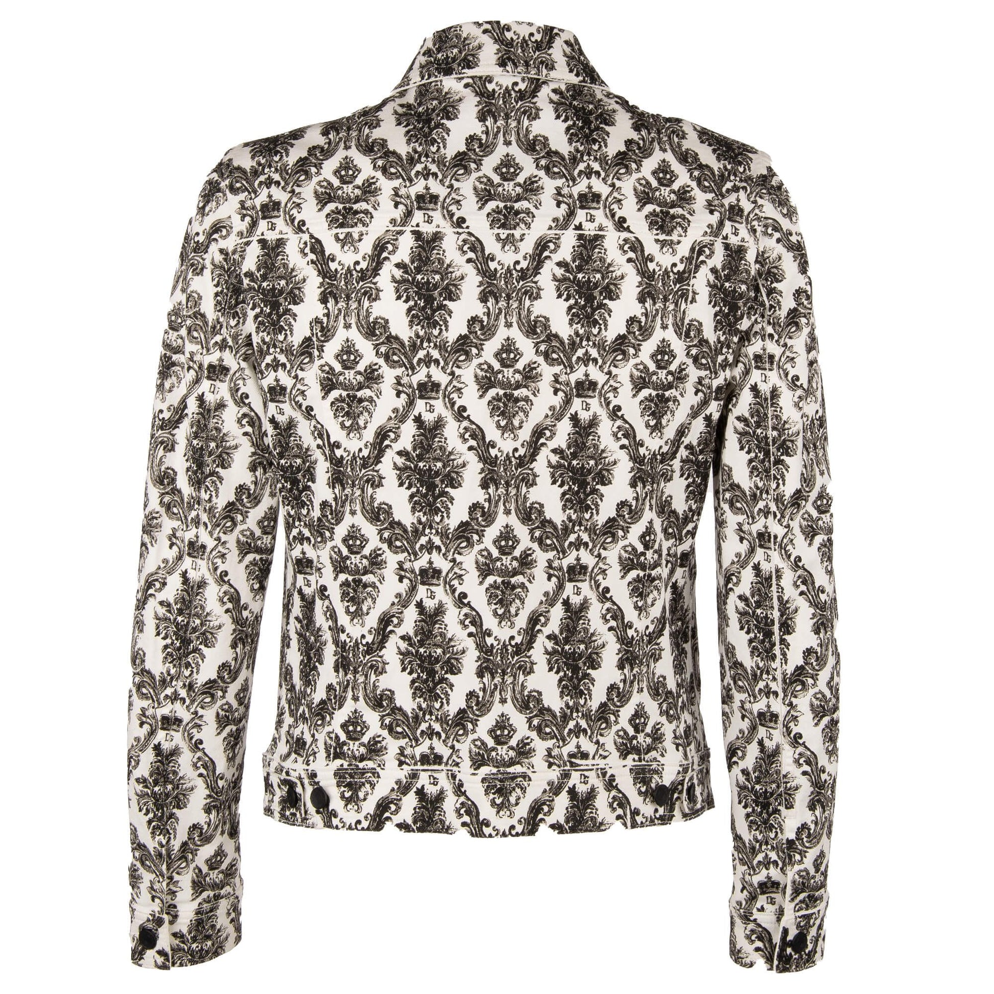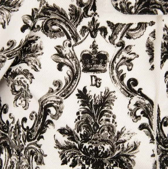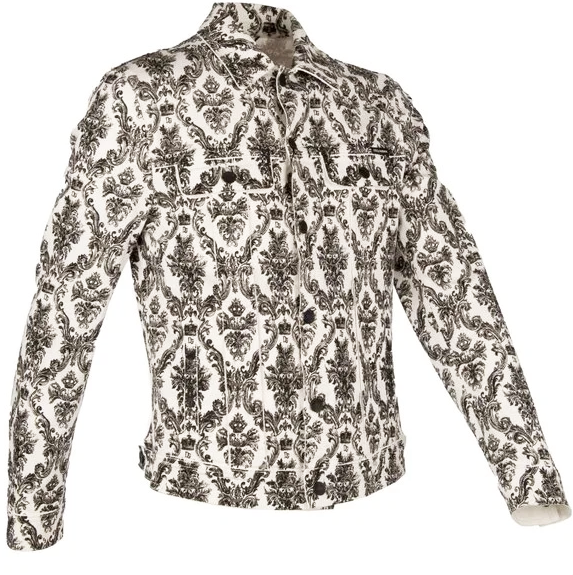 Discover this pristine white denim jacket, adorned with signature crown prints for an updated classic look. The jacket features a versatile button closure, practical breast and side pockets also with button closures to secure your essentials. Tailored for a comfortable fit, this Italian-made piece is a seamless blend of style and function, ideal for elevating your casual wardrobe.