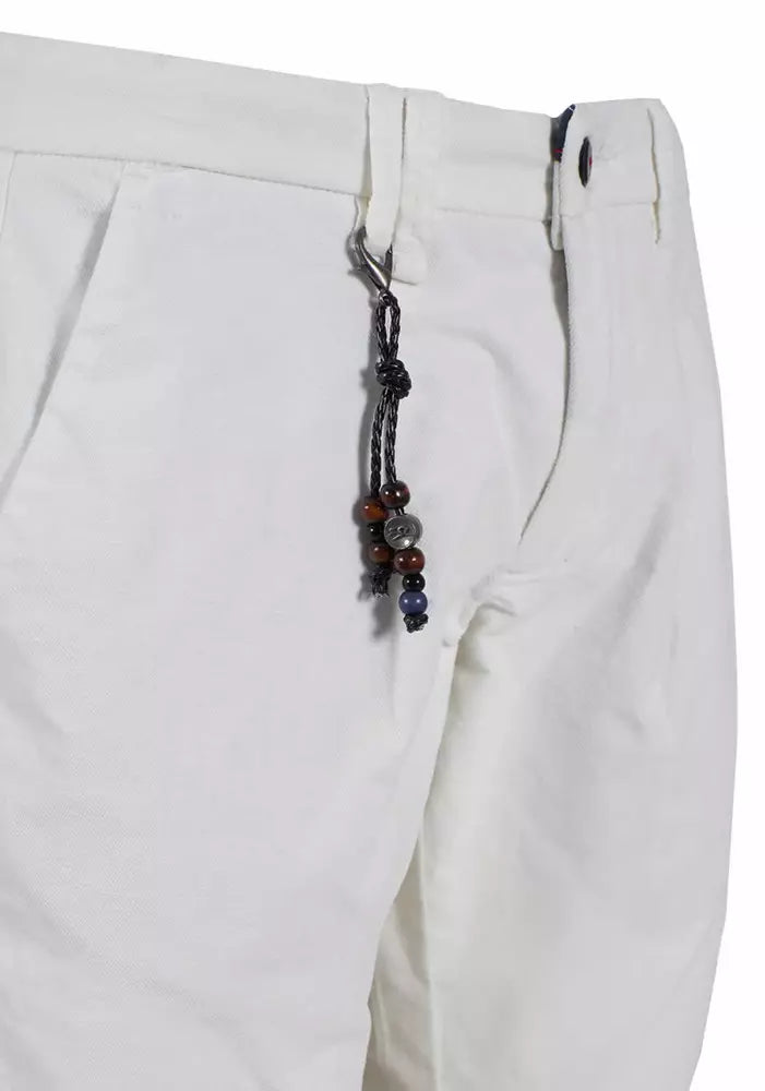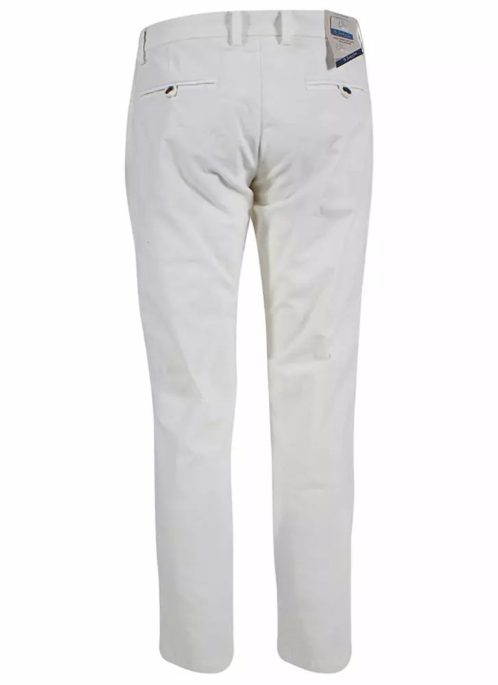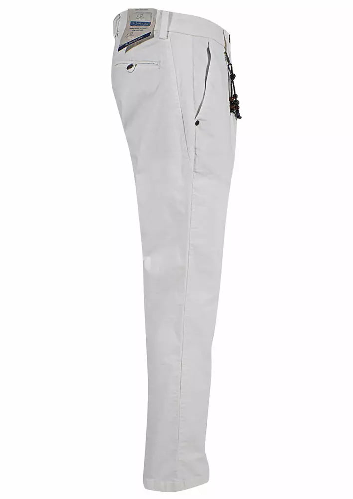 Step up your style game with our elegant white chino trousers, perfect for a polished look. Featuring sharp pleats and a classic five-pocket design, these trousers are a versatile addition to any wardrobe. The button and zip fastening provide a secure and smooth closure, ensuring a comfortable fit throughout the day. Crafted from a premium blend of materials, these trousers offer both comfort and durability.