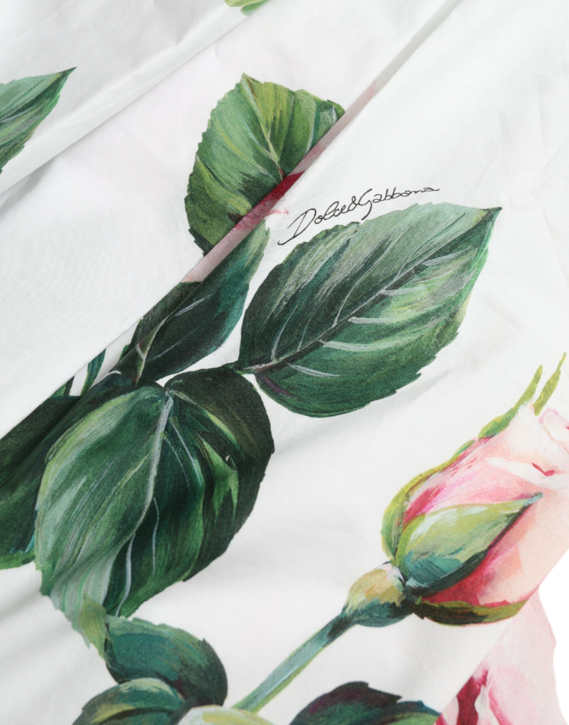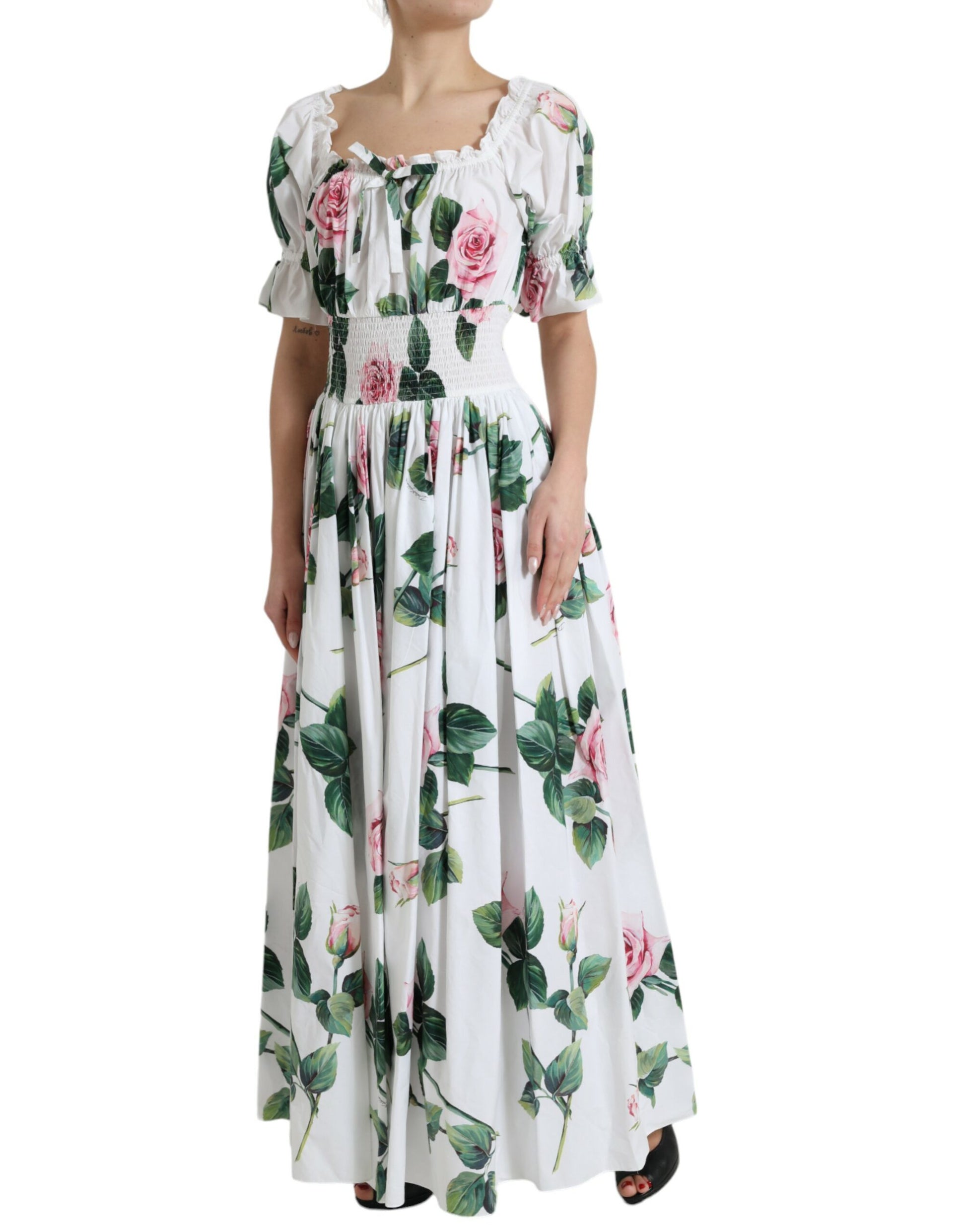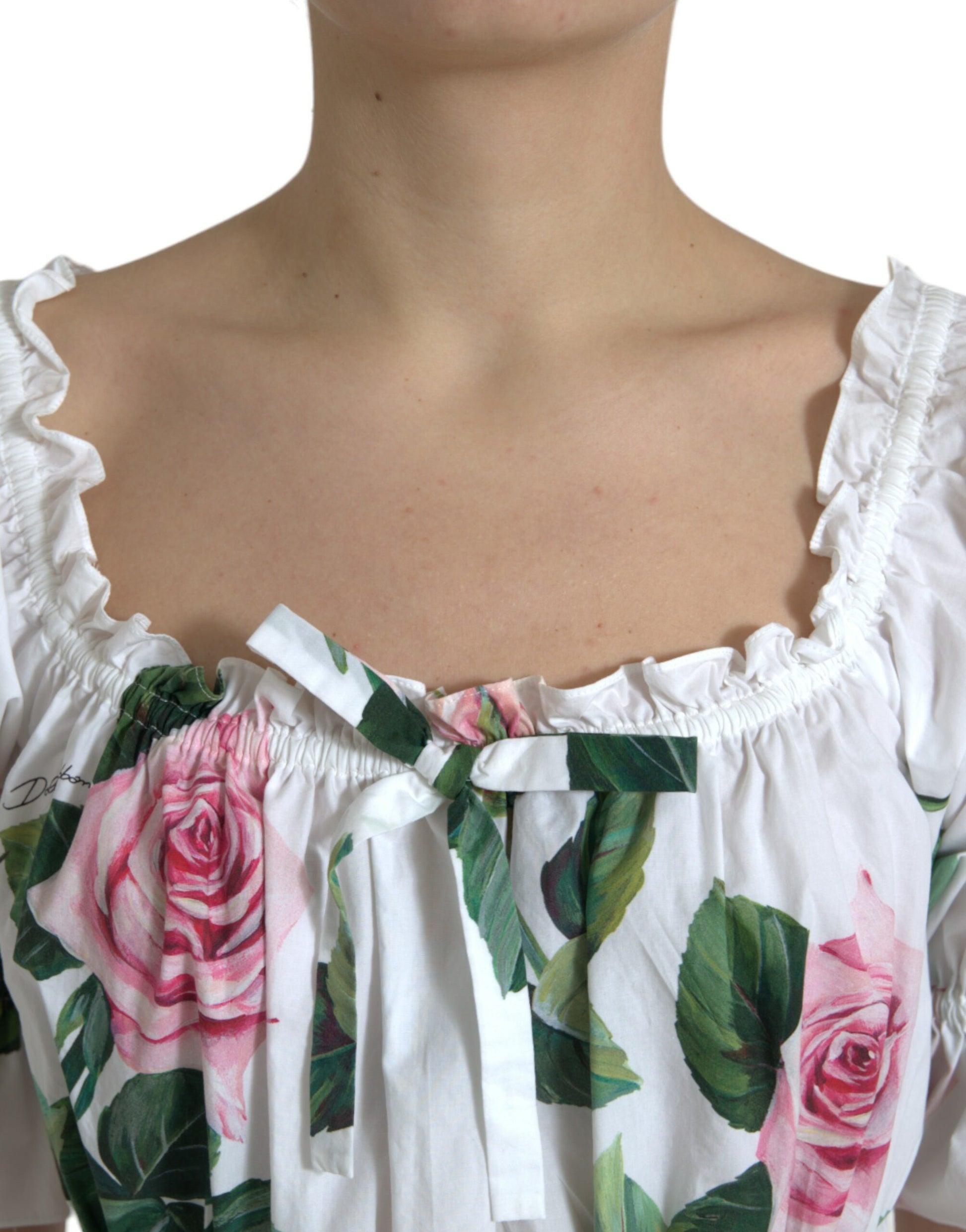 Gorgeous brand new, 100% Authentic Dolce & Gabbana white cotton midi dress. Featuring a floral print, an off the shoulder design, short sleeves, a back zip fastening, gathering details, a flared style and a mid-length.