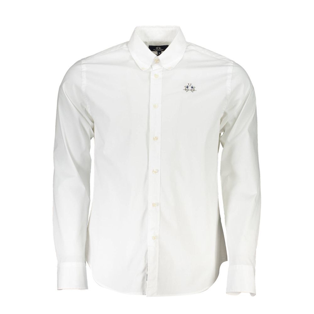 Step into refined elegance with this La Martina Slim Fit Shirt. Crafted for the modern gentleman, it features long sleeves and a classic button-down collar. The one-button cuffs and sleek button detailing provide a polished look, perfect for any sophisticated ensemble. An embroidered logo adds a signature touch of luxury to this essential piece.