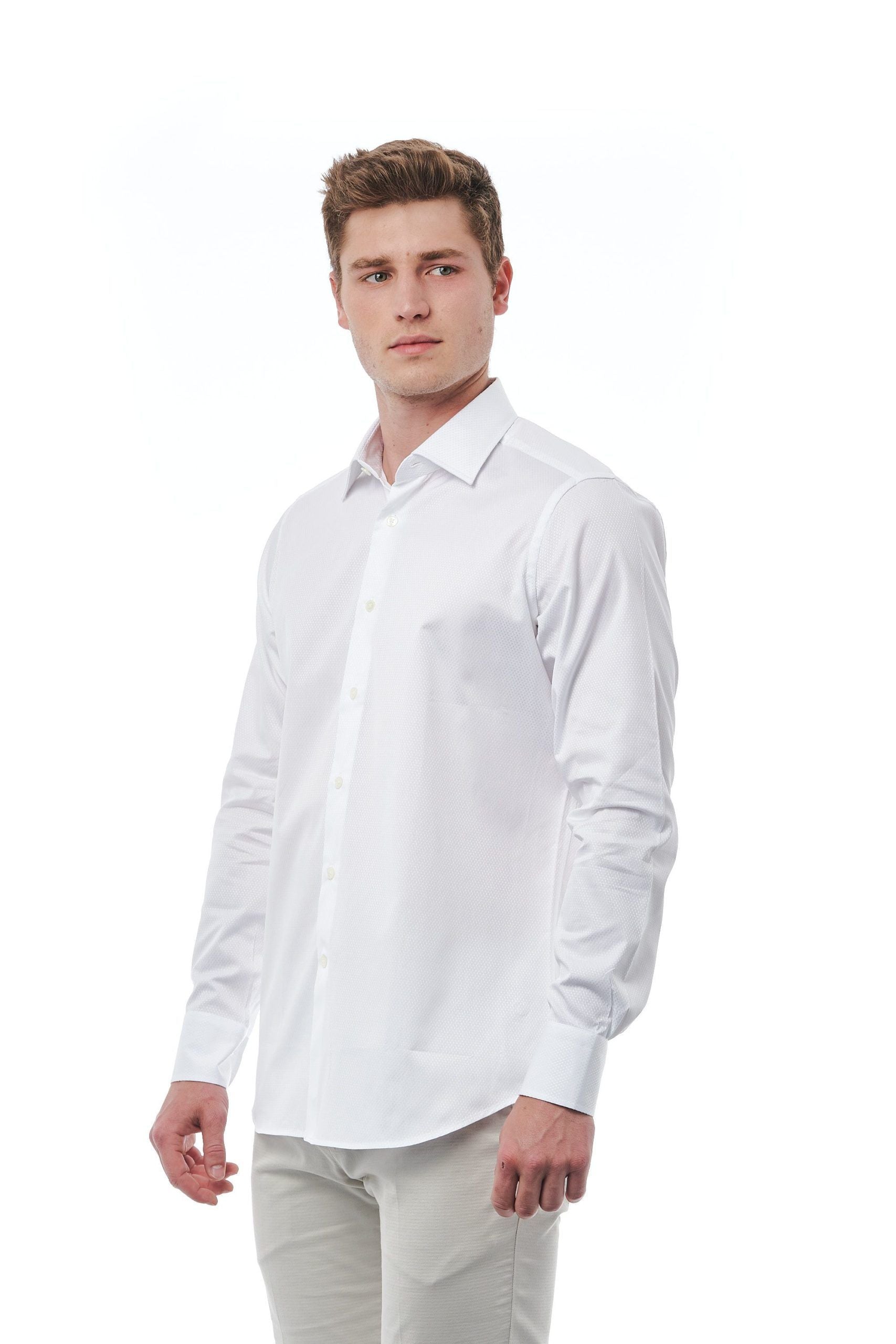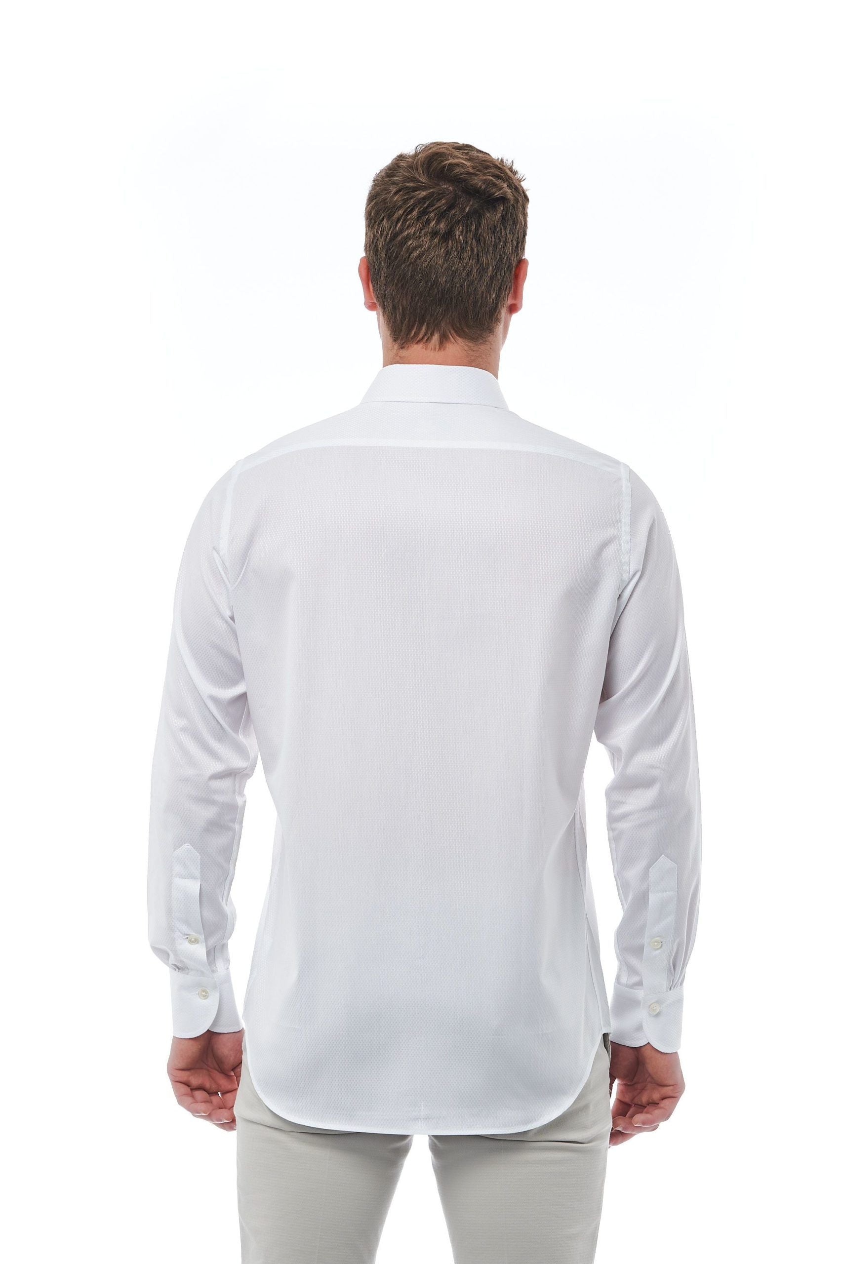 Experience the epitome of Italian craftsmanship with this elegant white shirt from Bagutta. Tailored to a regular fit and showcasing a sophisticated Italian collar, it’s a staple piece for any discerning gentleman’s wardrobe. Perfect for various occasions, from business meetings to social gatherings, this shirt promises both comfort and style.