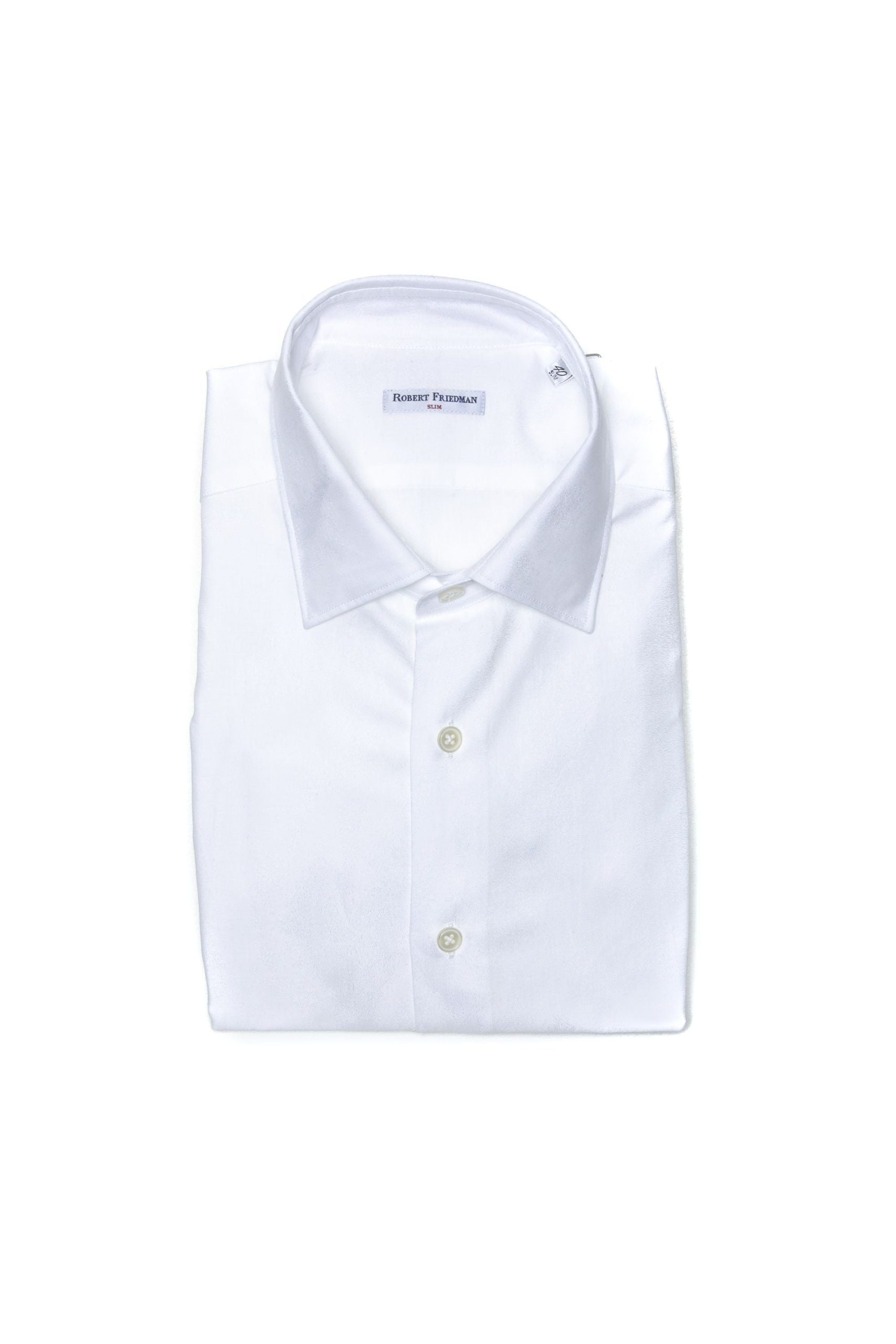 Discover the impeccable blend of simplicity and sophistication with our pristine white shirt. Crafted from 100% high-quality cotton, this piece by Robert Friedman represents classic style with a modern twist, ensuring you a sharp look for any occasion. Designed in Italy, the shirt exudes elegance and superior comfort. Perfect for professional settings or upscale social events.