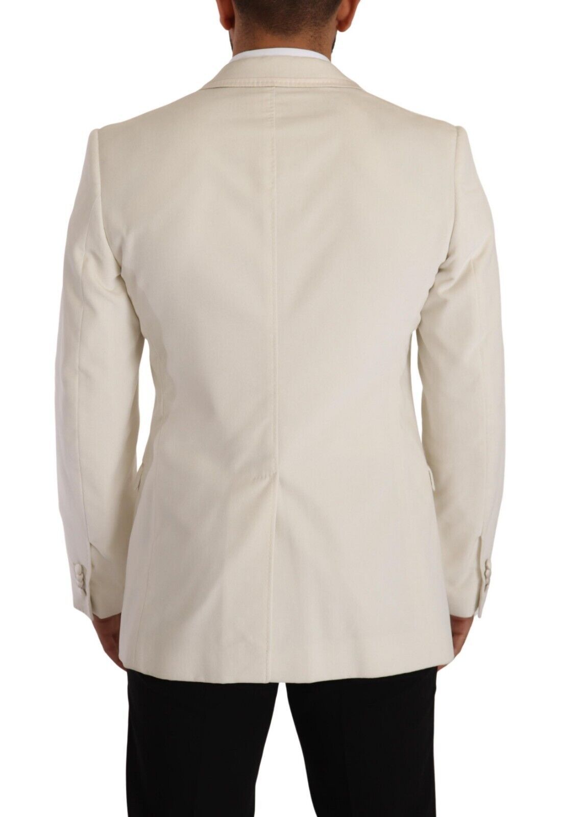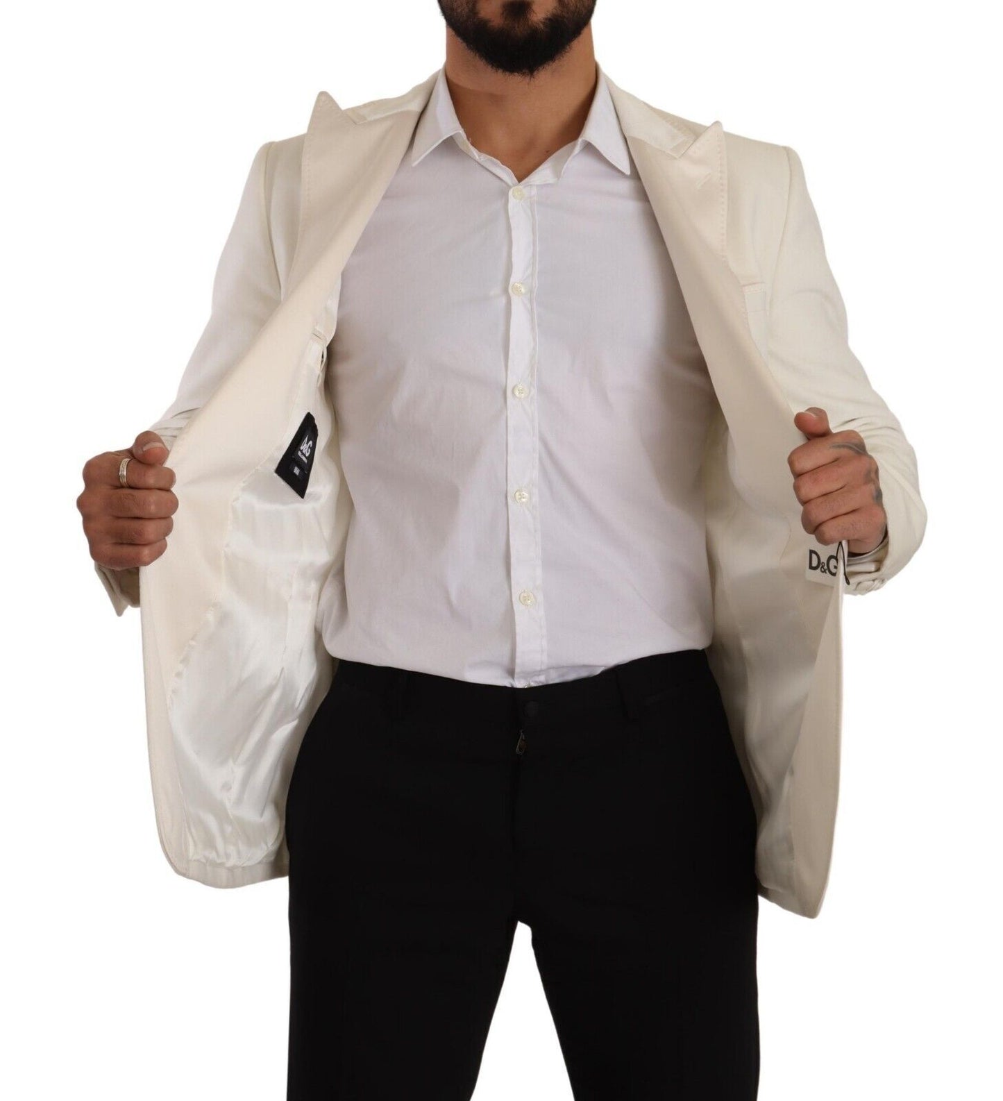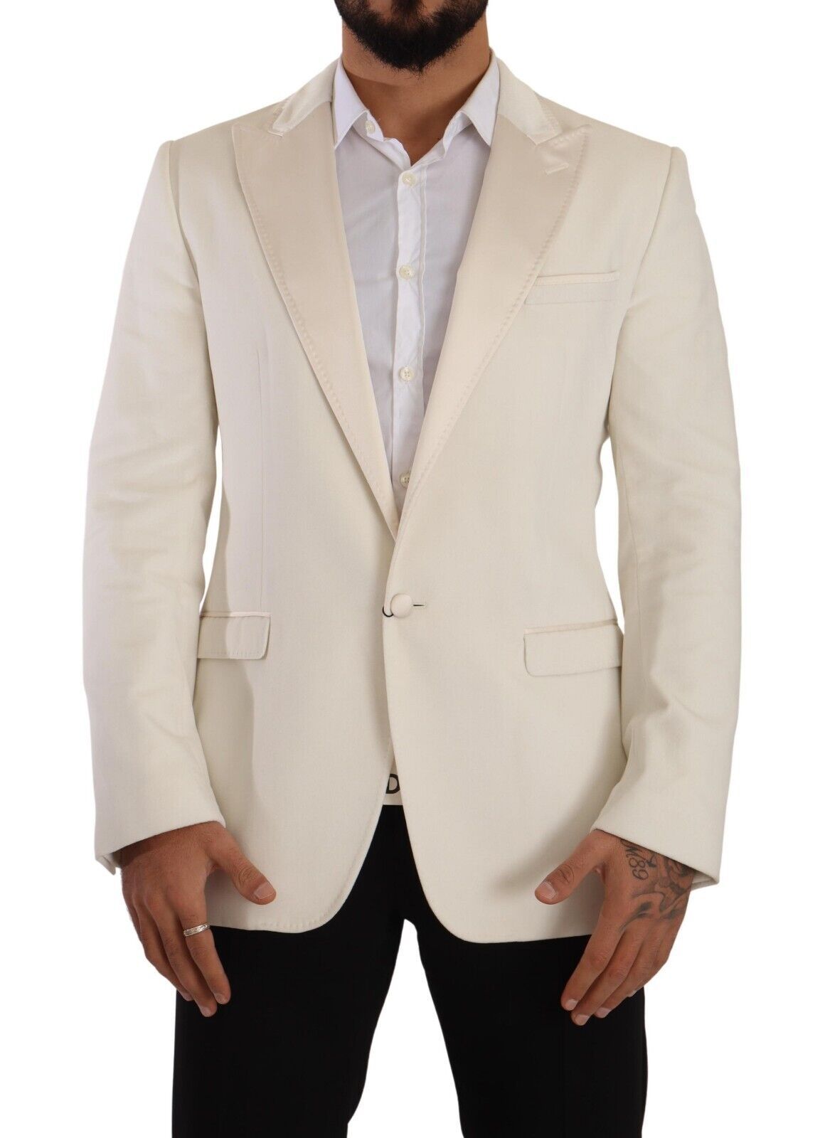 Elevate your formal wardrobe with this absolutely stunning Off White Slim Fit Blazer from the prestige fashion house, Dolce & Gabbana. Crafted with high craftsmanship in Italy, this single-breasted blazer is designed with peak lapels, a contemporary broad silhouette, and a sleek button closure. It’s not just a garment, but a statement of style and exclusivity, perfect for any discerning gentleman looking to make an impression.