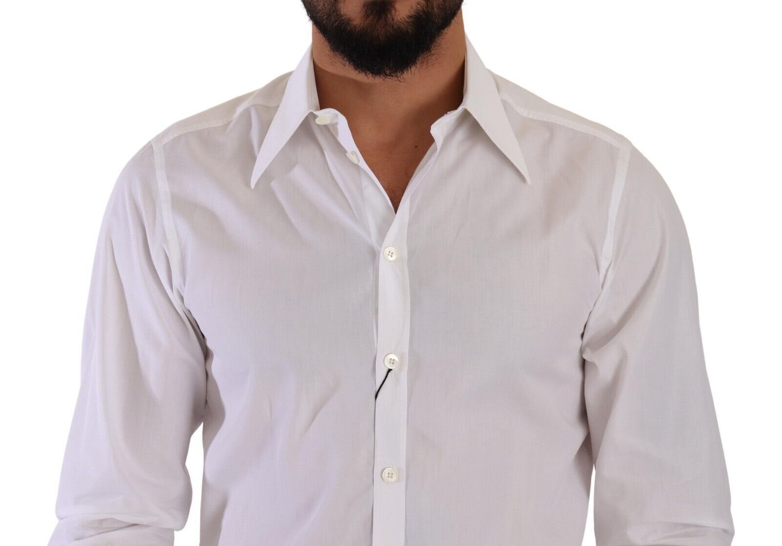 Experience the epitome of Italian craftsmanship with this absolutely stunning, 100% Authentic Dolce & Gabbana white cotton dress shirt. Perfect for those who appreciate the finer details in fashion, this shirt features a classic collar, long sleeves, and a refined front button closure that exudes elegance. Tailored to a slim fit, this piece promises a sharp, streamlined silhouette for any sophisticated occasion.