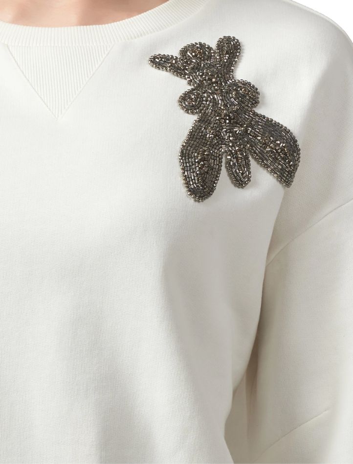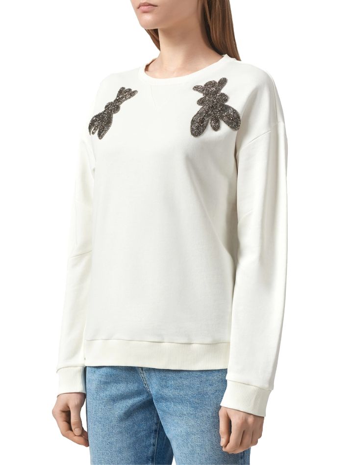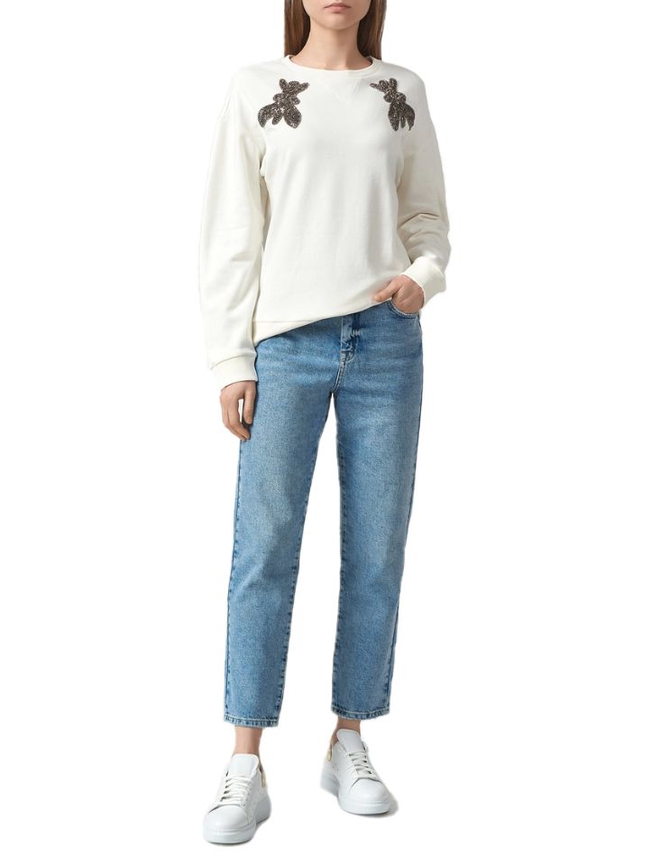 Experience the perfect blend of comfort and glamour with this elegant cotton crewneck sweatshirt, adorned with a stunning rhinestone application on the front. The chic design is completed with a silver printed logo on the back, adding a touch of luxury to your casual wardrobe. Crafted from high-quality cotton, this sweatshirt offers both softness and durability for daily wear.