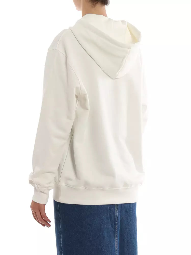Embrace casual luxury with this pristine white cotton hoodie, distinguished by its contrasting front print that adds a touch of effortless style to any ensemble. Crafted from 100% soft cotton, it promises both comfort and lasting quality, making it an essential addition to your wardrobe.