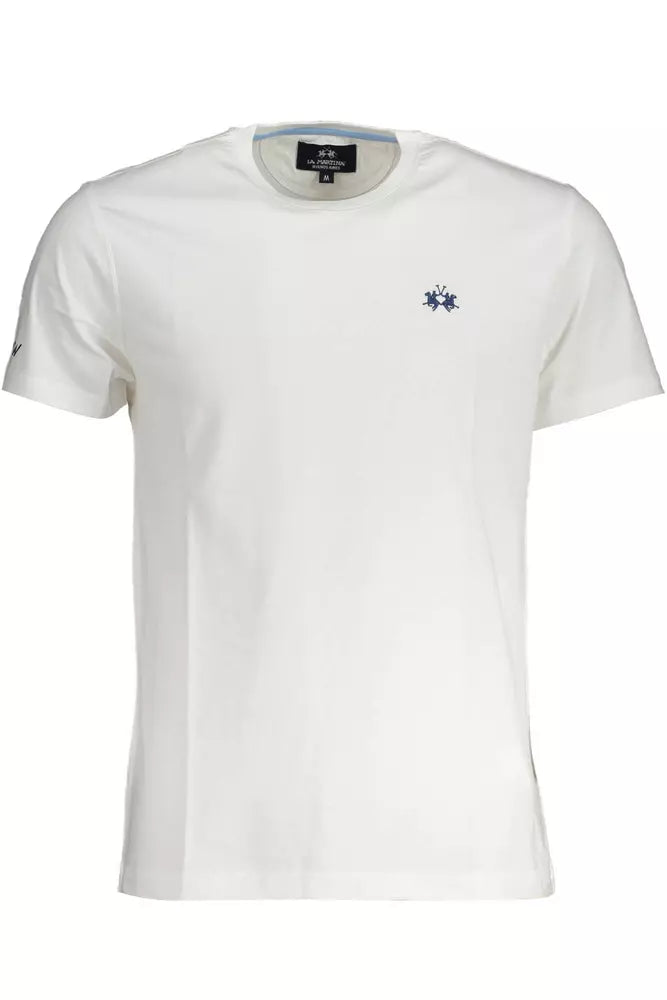 Discover the epitome of casual sophistication with our Elegant White Embroidered Tee from La Martina. Tailored to a regular fit with a classic round neck, this short-sleeved t-shirt features exquisite embroidery and a bold logo print that exudes style with a sporty edge. Crafted from 100% premium cotton, it promises both comfort and durability. Perfect for any casual or smart-casual ensemble.