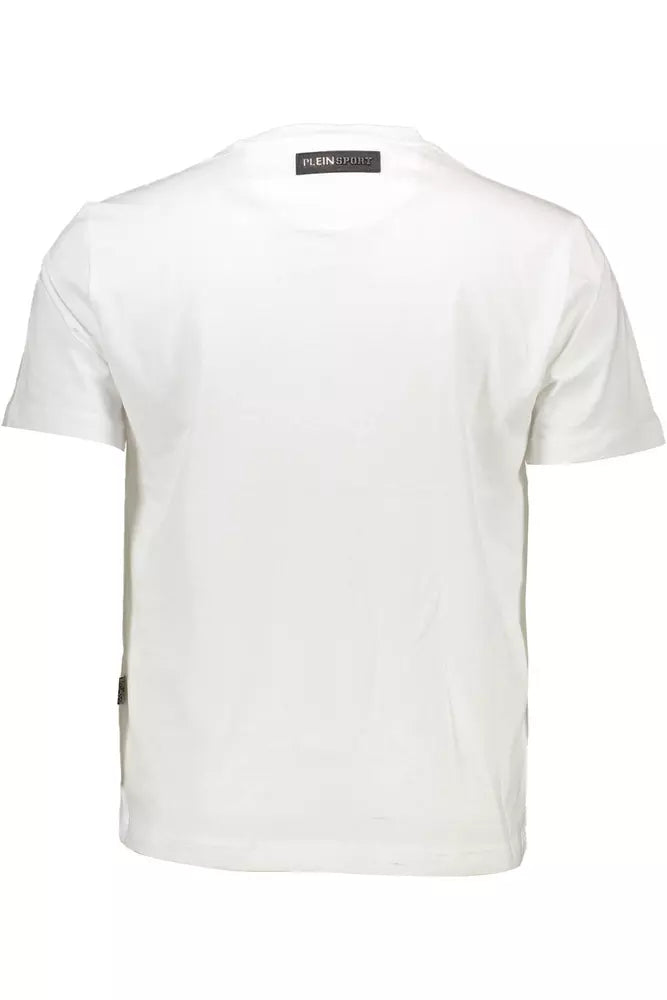 Elevate your casual style with this exquisite white short sleeve t-shirt from Plein Sport. Perfectly blending fashion and comfort, it features a classic crew neck, eye-catching print, and striking contrasting details, topped off with the brand’s iconic logo for an unmistakable touch of luxury.