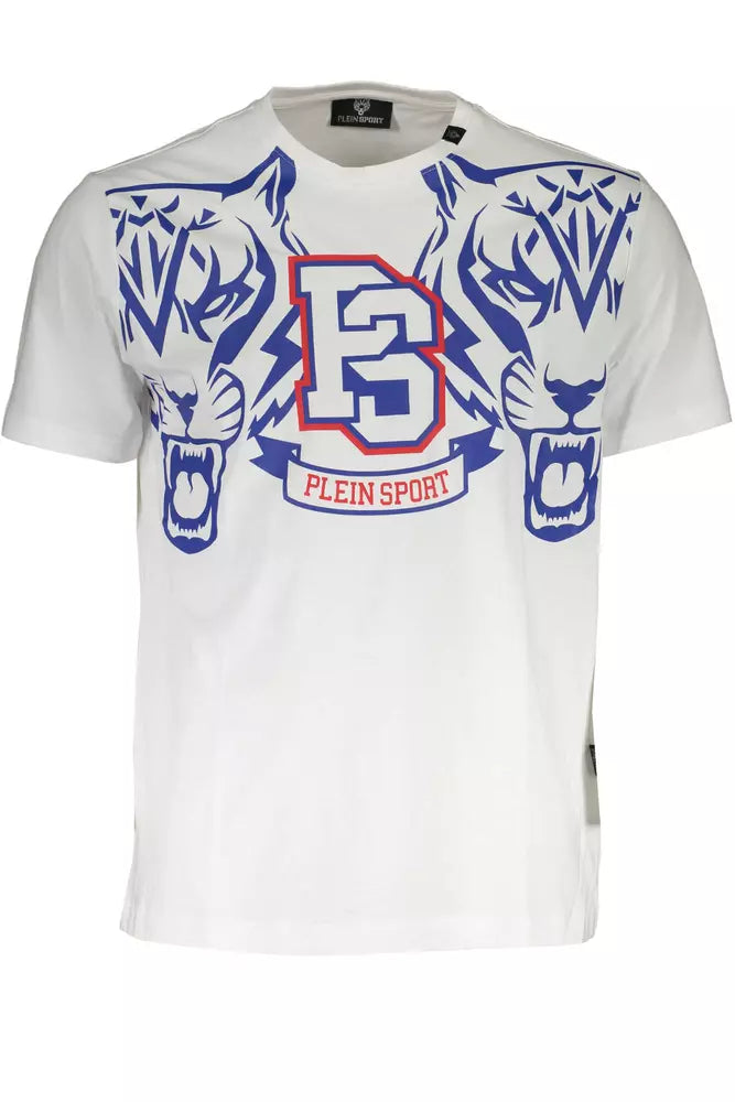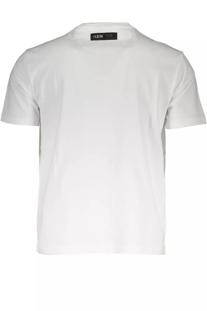 Experience casual sophistication with our pure cotton short sleeve t-shirt from Plein Sport. Featuring a classic crew neck design adorned with a striking print and the signature logo, it’s a versatile addition to any modern wardrobe.