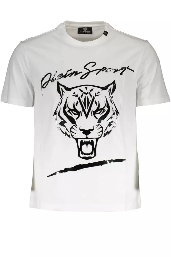 Step up your casual wear with the distinctive appeal of Plein Sport’s pristine white t-shirt. Crafted for the modern man who values comfort without compromising on style, this short sleeve tee features a bold print and the iconic Plein Sport logo, exuding an athletic yet fashionable vibe. Perfectly tailored for an impeccable fit, it’s a wardrobe staple for any style-conscious individual.