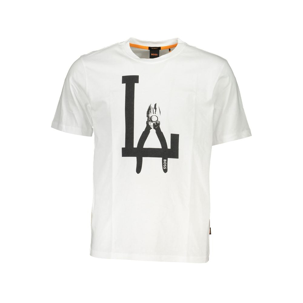 Transform your casual wardrobe with the Hugo Boss relaxed fit crew neck t-shirt. This short-sleeved top is crafted from high-quality organic cotton, featuring a sharp print and the iconic logo for a touch of elegance. Its pure white hue makes it a versatile piece to pair with any outfit, ensuring you radiate effortless style.