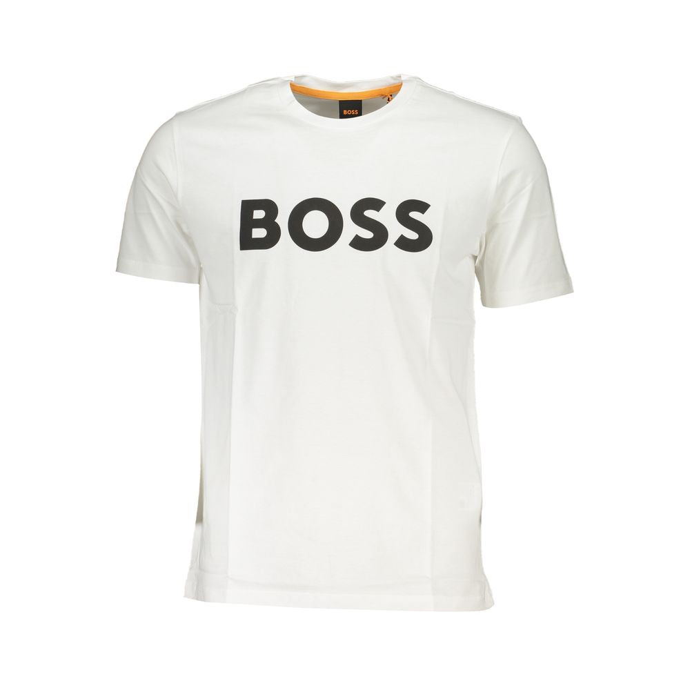 Experience superior comfort with this pristine Hugo Boss short sleeve t-shirt, crafted from 100% organic cotton. The classic crew neck design is enhanced with a distinctive print and the iconic logo, making it a timeless addition to your wardrobe. Impeccably designed to offer a relaxed yet stylish fit, perfect for any casual occasion.