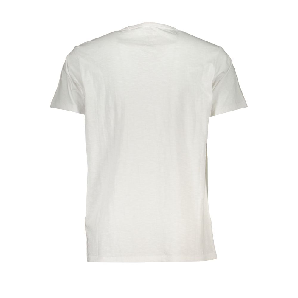 Revamp your casual wardrobe with a touch of sophistication with our elegant white T-shirt. Crafted from 100% organic cotton, this short-sleeve top from Guess Jeans offers a comfortable regular fit and a classic crew neck. The single pocket detailing combined with the distinct logo application adds a touch of unique style that sets you apart.