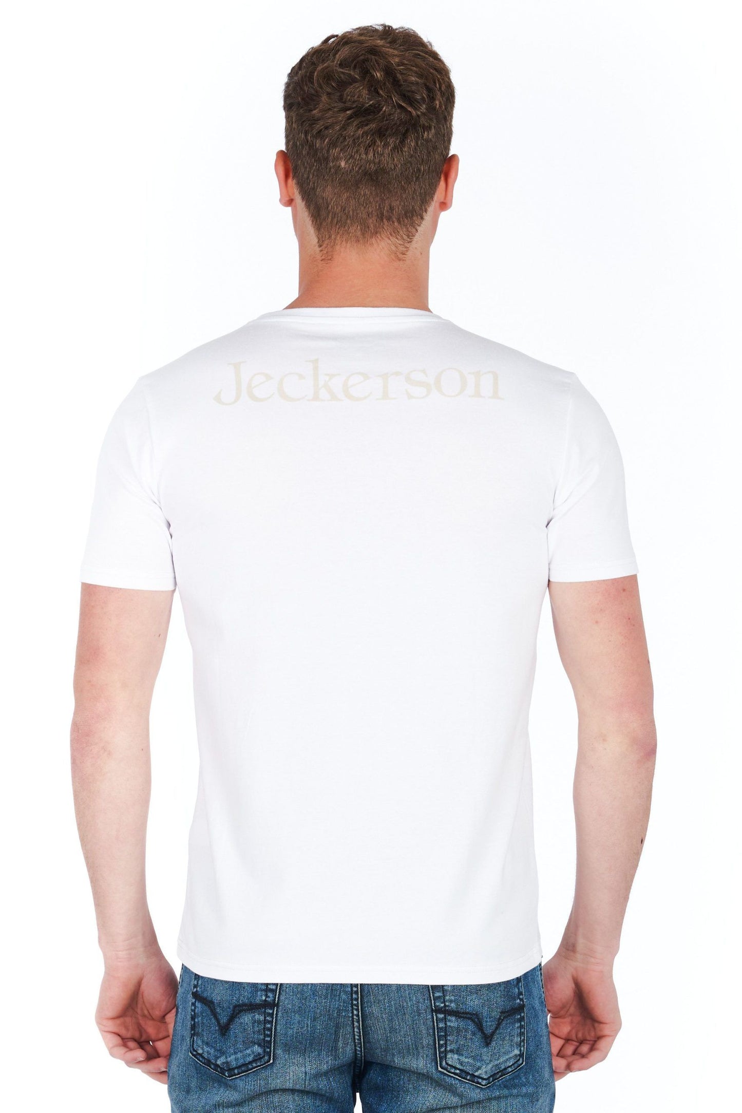 Experience the perfect blend of style and comfort with Jeckerson’s Slim Fit Logo Jersey T-Shirt. Designed for the modern man, this crisp white tee boasts a sleek logo print on the back and a convenient chest pocket. Its round neck and short sleeves make it an ideal choice for any casual occasion, while the slim fit silhouette ensures a flattering look.