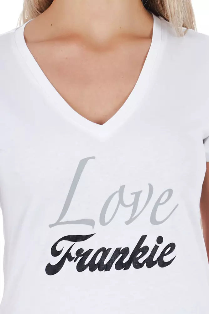 Elegant V-Neck Tee with Chic Front Print