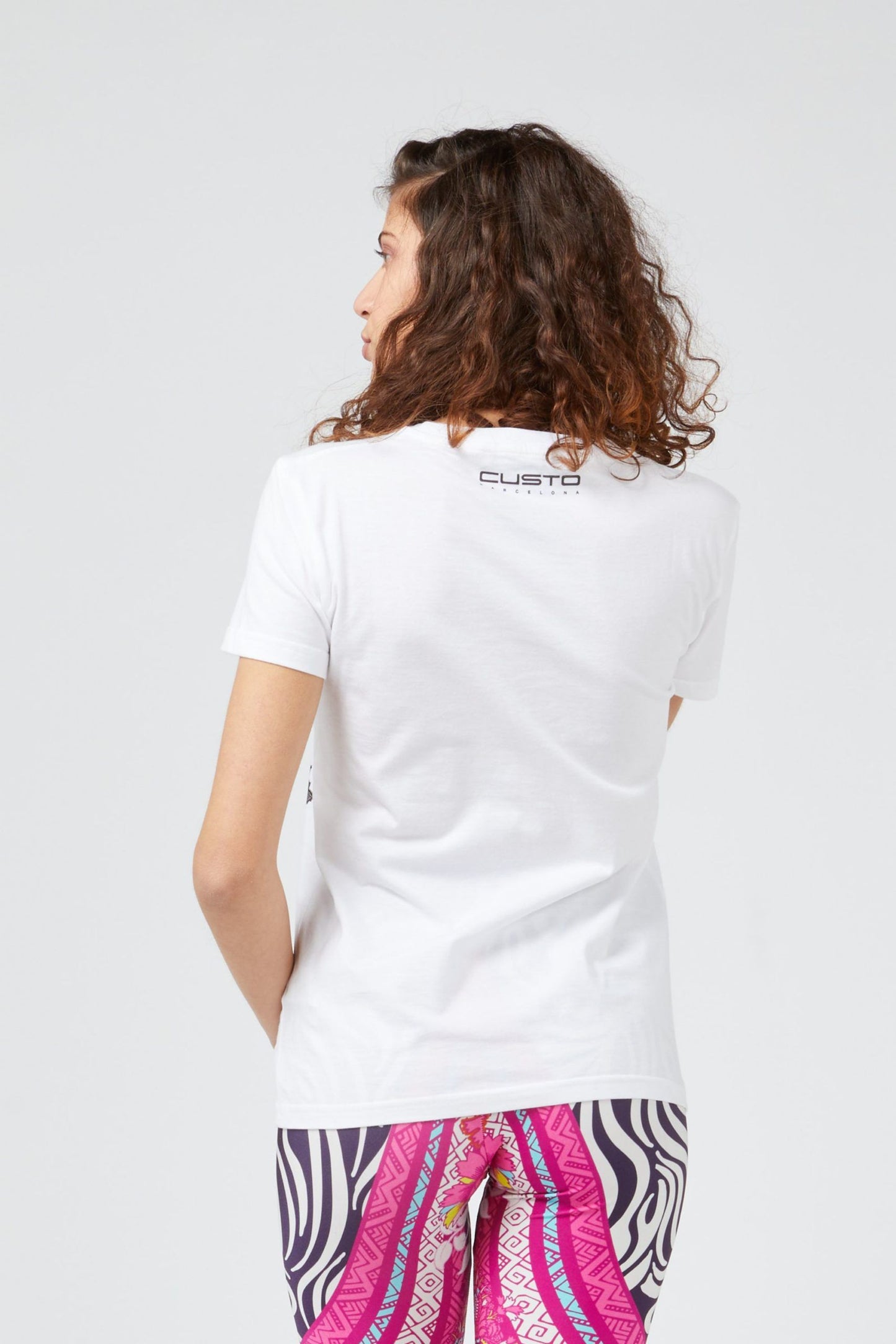 Exude laid-back elegance in this crisp, white T-shirt from Custo Barcelona, featuring a striking front print that adds a dash of artistic flair to your casual wear. The subtle logo imprinted on the back provides a signature touch, ensuring that your style is both unique and recognizable. Perfect for pairing with jeans or tucking into skirts, this tee is a versatile addition to any fashion-savvy wardrobe.