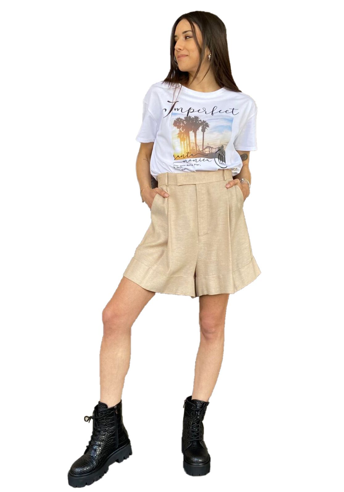 Discover the allure of simplicity with Imperfect’s crisp white cotton t-shirt, boasting a striking front print complemented by embossed lettering for a touch of luxe texture. This piece epitomizes casual chic, seamlessly melding comfort with style.