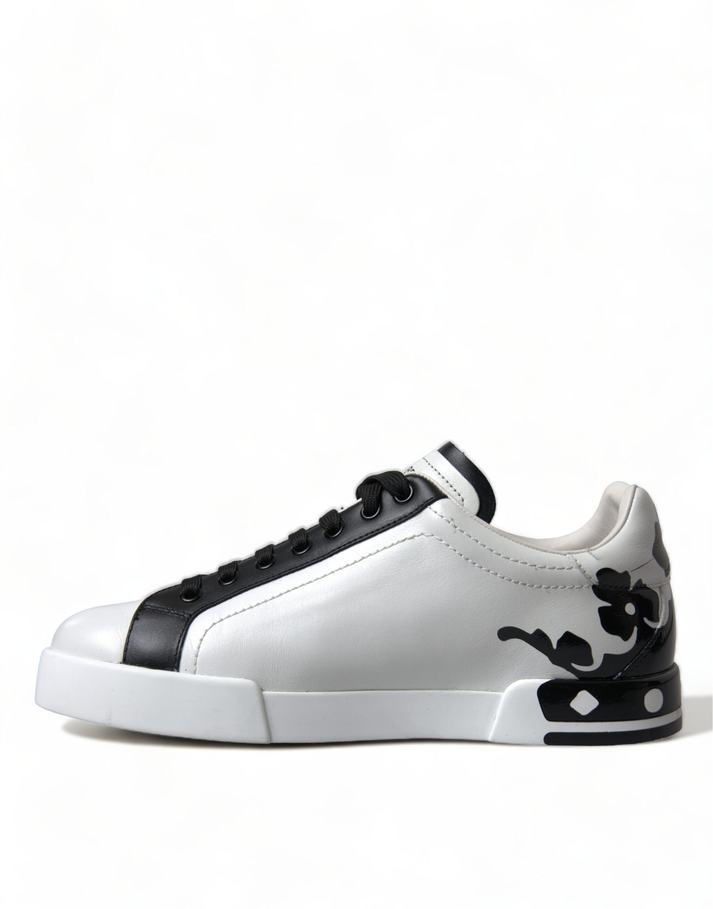 Step out in style with these gorgeous, new-with-tags sneakers by Dolce & Gabbana. Crafted from luxurious 100% leather, these low-top shoes are the epitome of casual elegance. The crisp white color paired with subtle blue accents makes them a versatile addition to any fashion-forward wardrobe. Not only are they stunning, they’re also designed for comfort with their durable rubber soles ensuring you can stay on your feet all day with ease. Made in Italy, these sneakers exude craftsmanship and luxury.