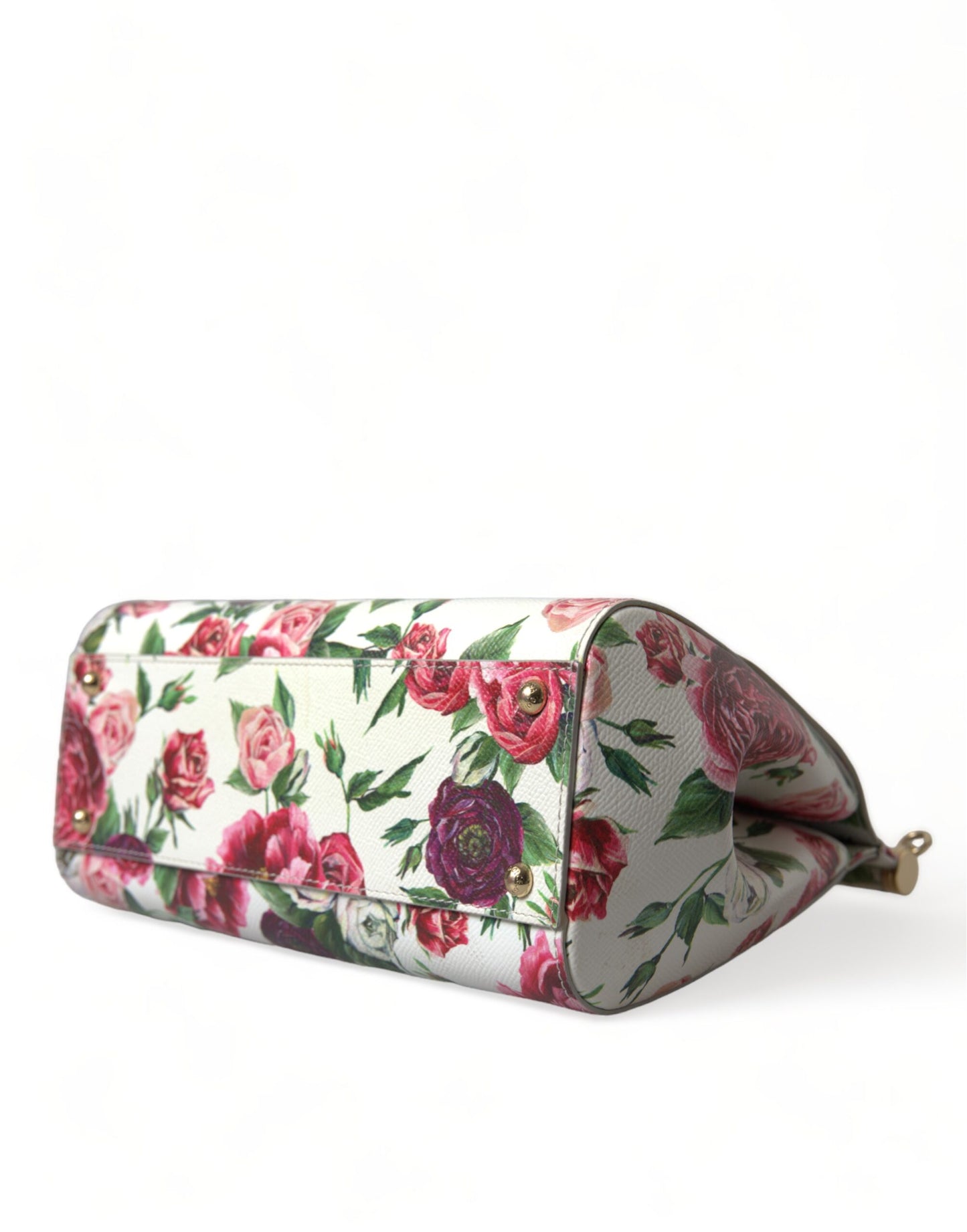 Gorgeous brand new with tags, 100% Authentic Dolce & Gabbana medium Sicily bag in peony rose printed dauphine calfskin with branded plate on the back.