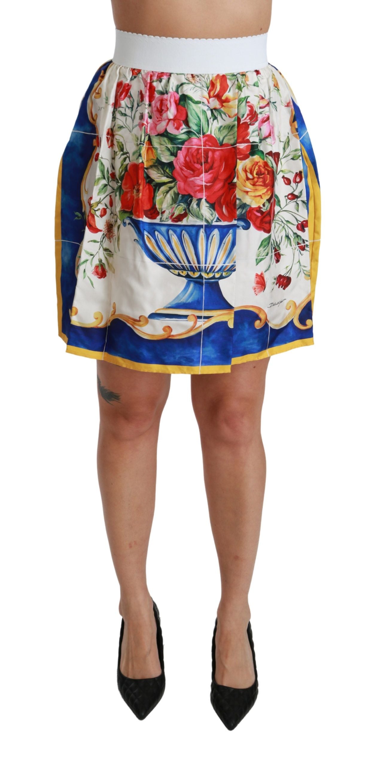 Introducing an exquisite piece from Dolce & Gabbana, this stunning high-waist skirt is a must-have for any fashion-conscious wardrobe. Featuring an elegant white flower vase design, it is perfect for making a sophisticated statement at any event. Detailed with a graceful above-knee cut and a convenient zipper closure, this skirt exudes Italian craftsmanship and luxury.