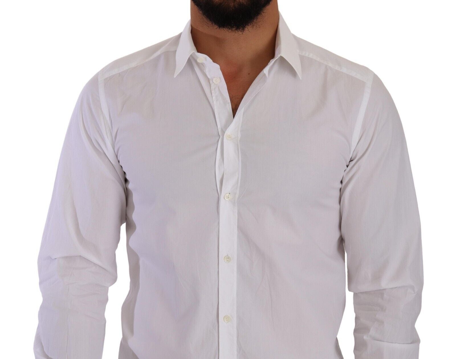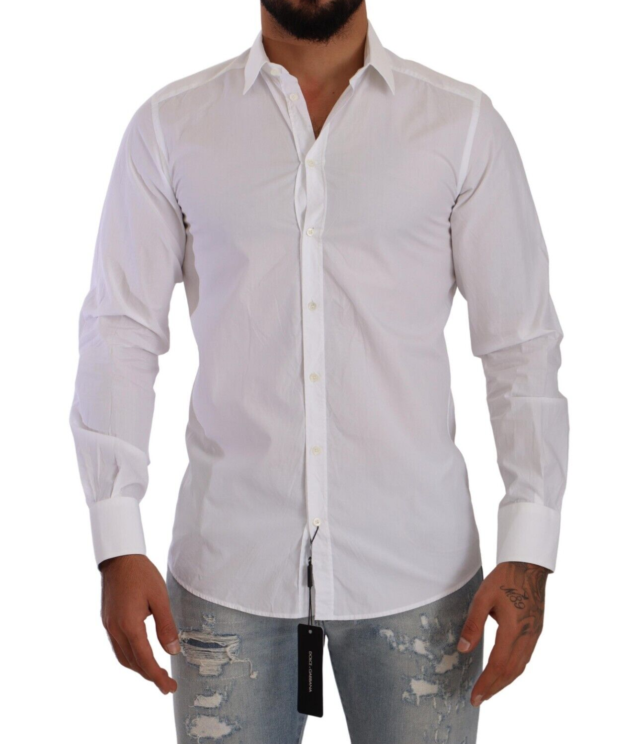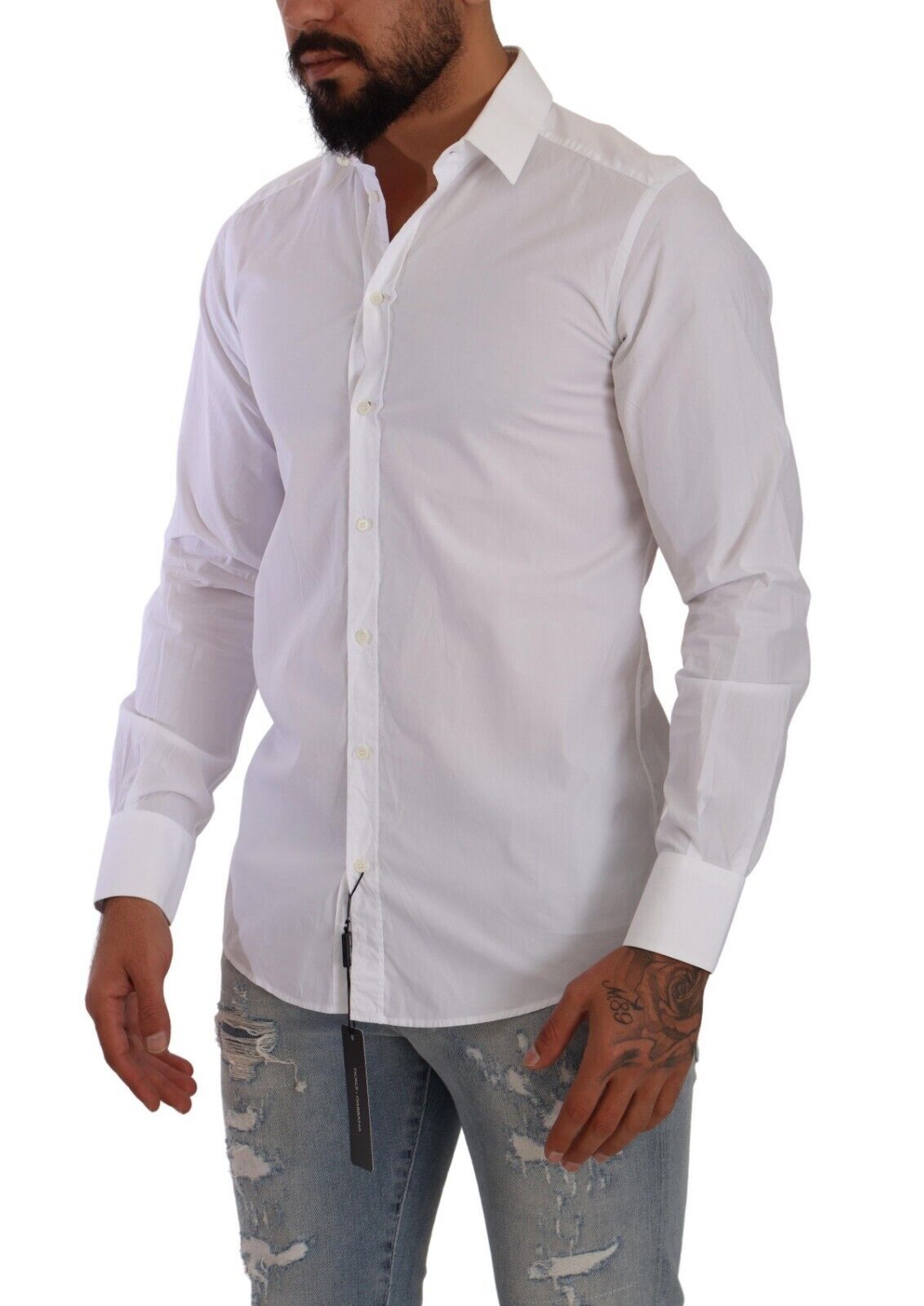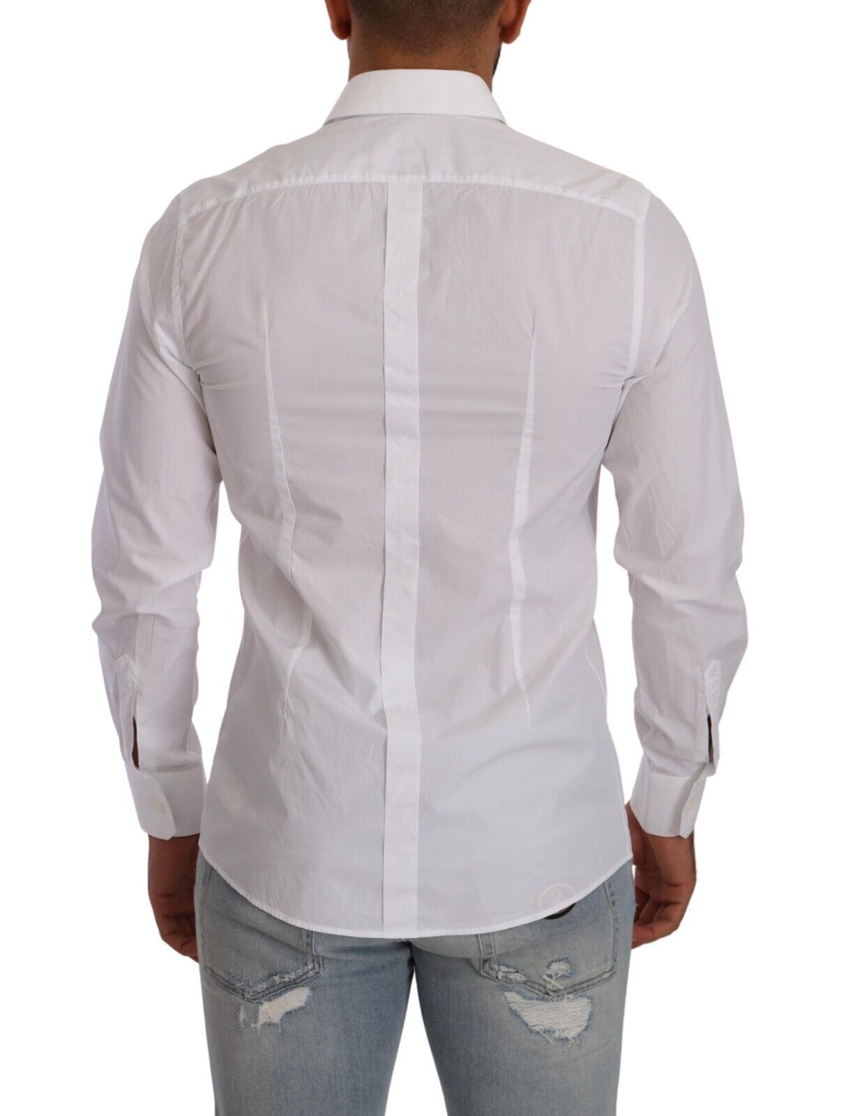 Discover sophistication with our timeless white dress shirt, a piece that embodies the unrivaled craftsmanship and style of Dolce & Gabbana. Perfectly tailored to offer a slim fit, this shirt is a must-have for your wardrobe that seamlessly transitions from the boardroom to high-end social events. Each feature, from the classic neck to the meticulous front button closure, exudes elegance with an assurance of quality.