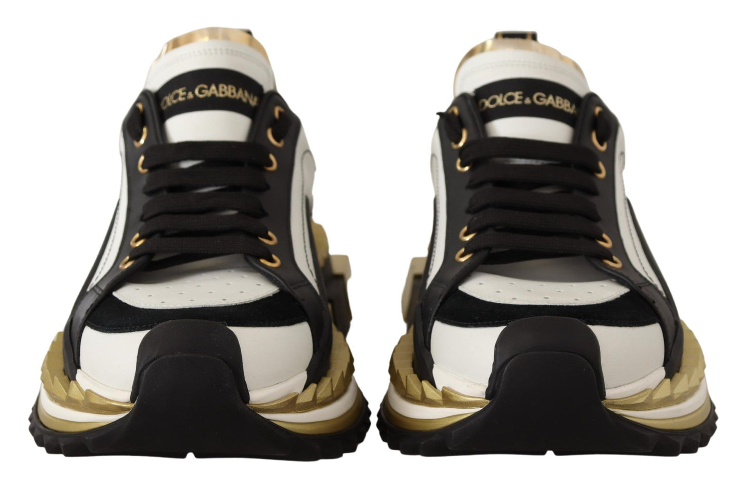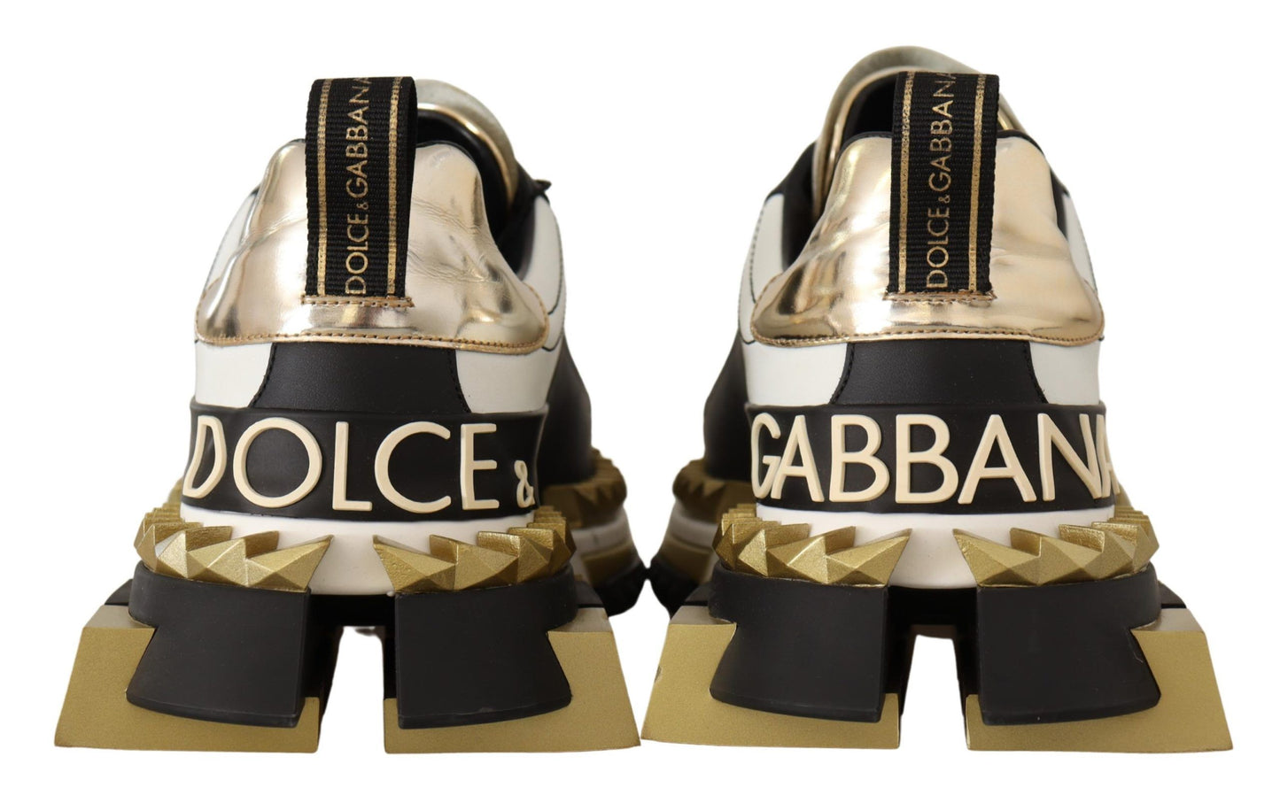Step into luxury with these stunning 100% Authentic Dolce & Gabbana Super King Sneakers. A masterpiece of craftsmanship that combines style with comfort, these sneakers are a true emblem of high-end fashion. Designed with meticulous attention to detail, they feature a striking gold, white, and black color palette that will elevate any casual ensemble. Made in Italy, they are synonymous with quality and sophistication. The durable rubber sole ensures lasting wear, making them as practical as they are stylish.