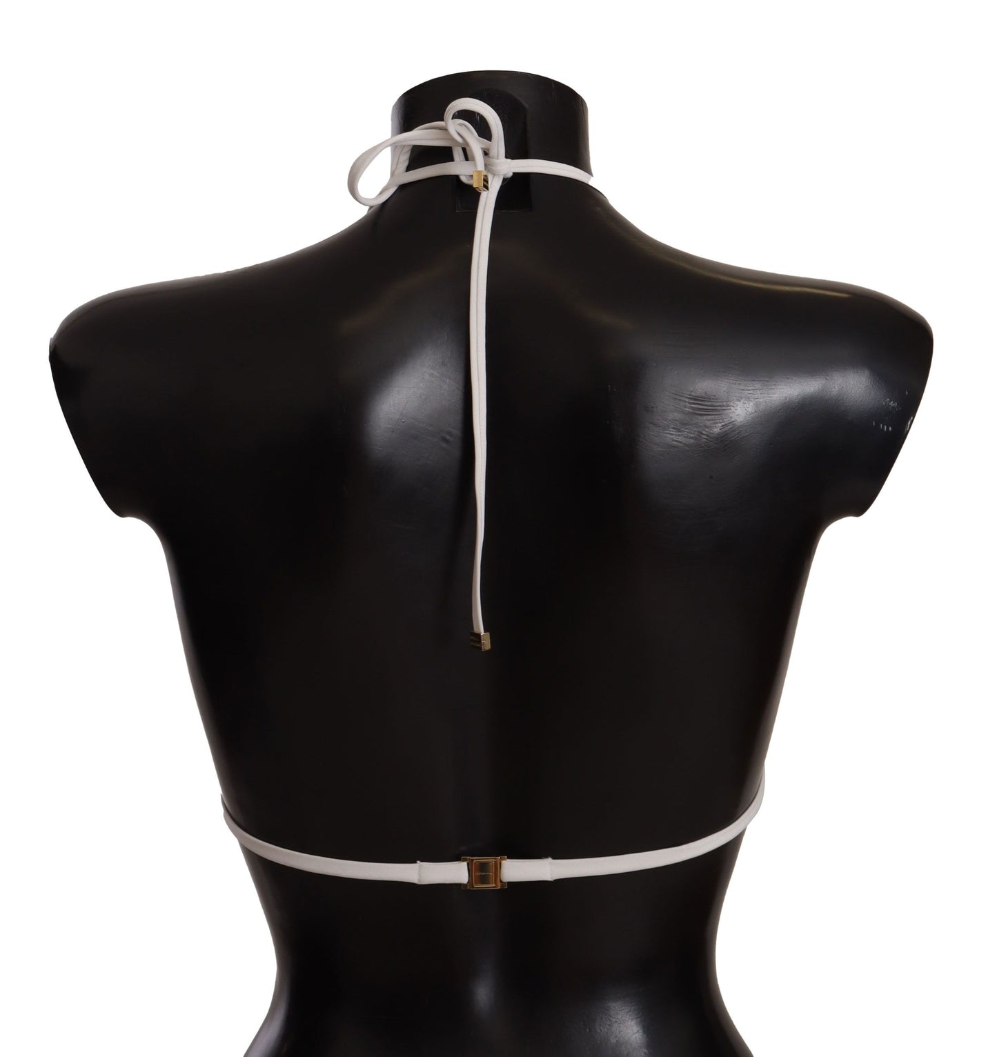 Indulge in the luxury of Dolce & Gabbana with this gorgeous, brand new bikini top. Crafted from a lightweight, elastic material, it offers both comfort and unparalleled style. The pristine white hue complements any complexion, while subtle logo details add a touch of brand prestige. Made in Italy, this piece not only represents high fashion but also embodies the quality and craftsmanship associated with the renowned label.