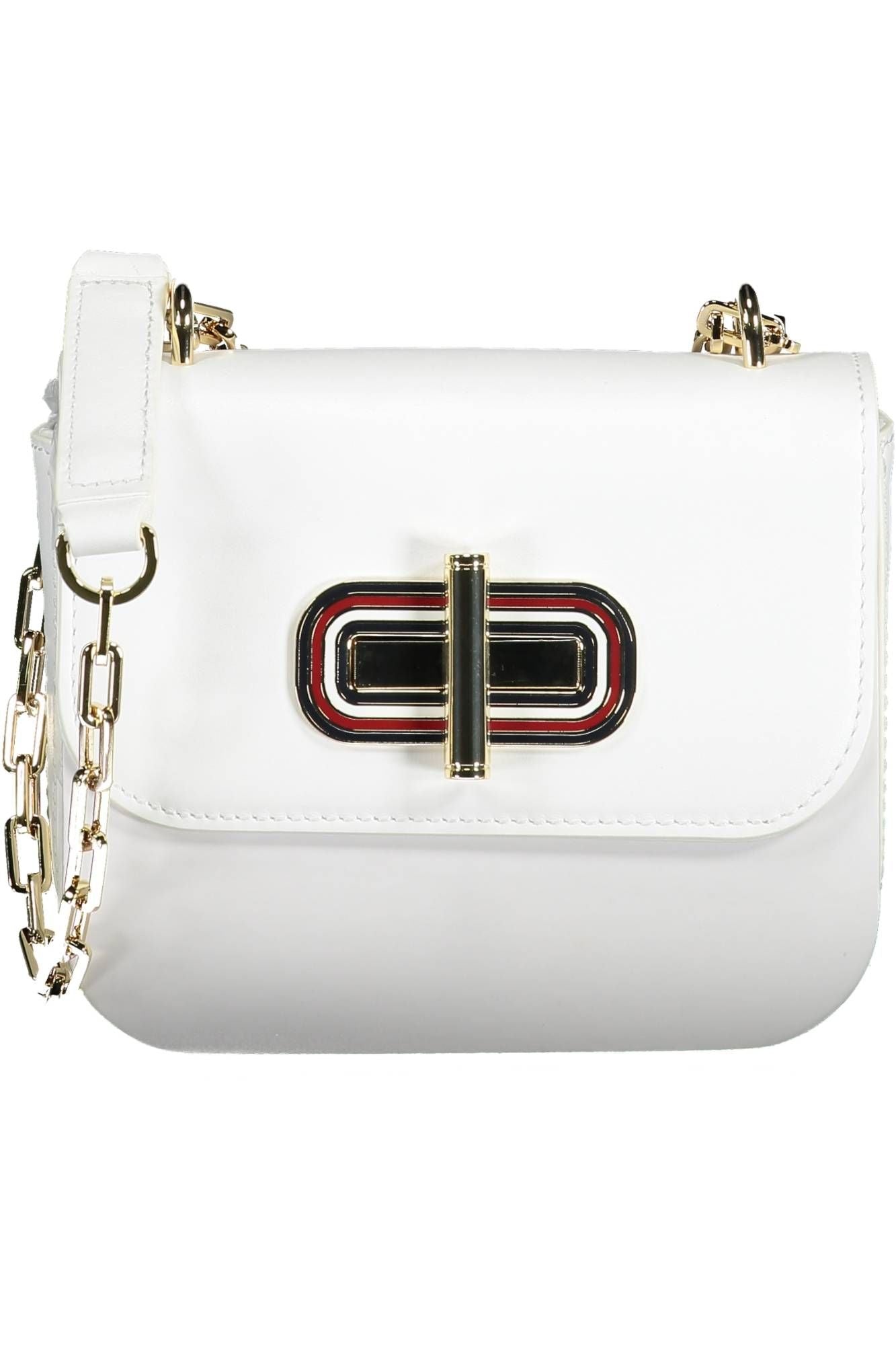 Elevate your accessory collection with this chic White Leather Shoulder Bag, crafted to perfection with contrast details for an eye-catching look. Carry your essentials in style while enjoying the functionality of a strap designed for comfort and the security of a turn closure. With one external pocket for quick access and two internal pockets to keep your belongings organized, this bag is both practical and fashionable.