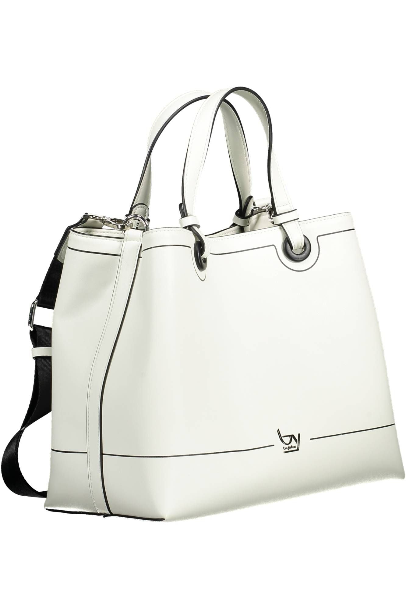 Experience the perfect blend of functionality and style with this elegant white handbag from BYBLOS. Crafted to keep up with your dynamic lifestyle, this bag features two spacious compartments, a central pocket for easy organization, and an additional two internal pockets for your essentials. The contrasting details add a touch of sophistication to your ensemble, while the adjustable and removable shoulder strap provides versatile carrying options. Secured with a zip and snap closure to keep your belongings safe, this bag is finished with a subtle logo imprint, showcasing its brand identity.