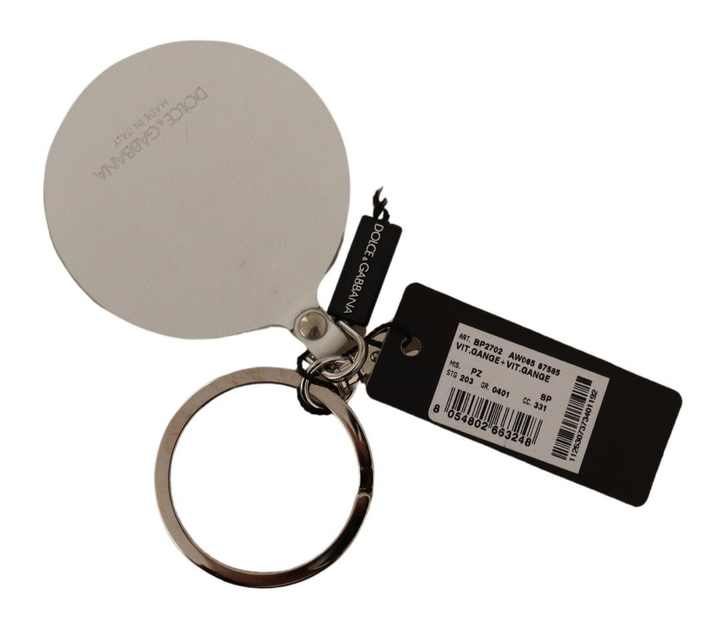 Indulge in the luxury of Dolce & Gabbana with this gorgeous brand new keychain, tagged for authenticity and crafted from 100% premium white leather. Designed to add a touch of elegance to your accessories, it features a sleek silver-tone keyring, and the iconic logo showcasing true craftsmanship. Perfect for keeping your keys organized in style, it was meticulously made in Italy. Elevate your accessory collection with this exquisite piece.