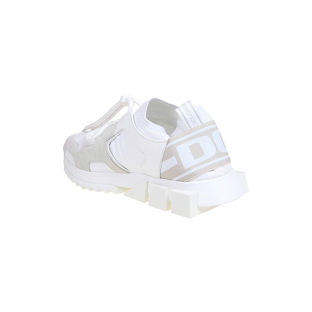Step into effortless luxury with these sleek sneakers, expertly crafted by Dolce & Gabbana. Made in Italy, this pair combines stretch fabric with sumptuous suede inserts and a durable rubber sole. The iconic brand logo elegantly adorns the back for a signature touch.