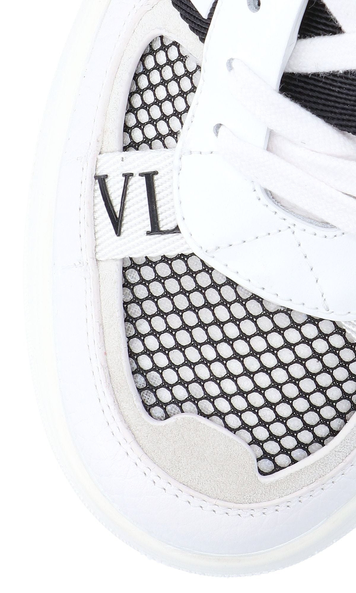 Step into distinguished Italian craftsmanship with these impeccable Valentino sneakers. Each pair is brand new with tags, accompanied by its original dustbag and shoe box, presenting a flawless addition to your discerning wardrobe. Crafted in leather with a bold White/Black color palette, these low-top sneakers exhibit a lace-up design, round toe silhouette, and are accented by mesh and Valentino’s iconic logo details. A robust rubber sole ensures durability and a sleek finish. Made in Italy, these sneakers are a testament to timeless style and luxury.