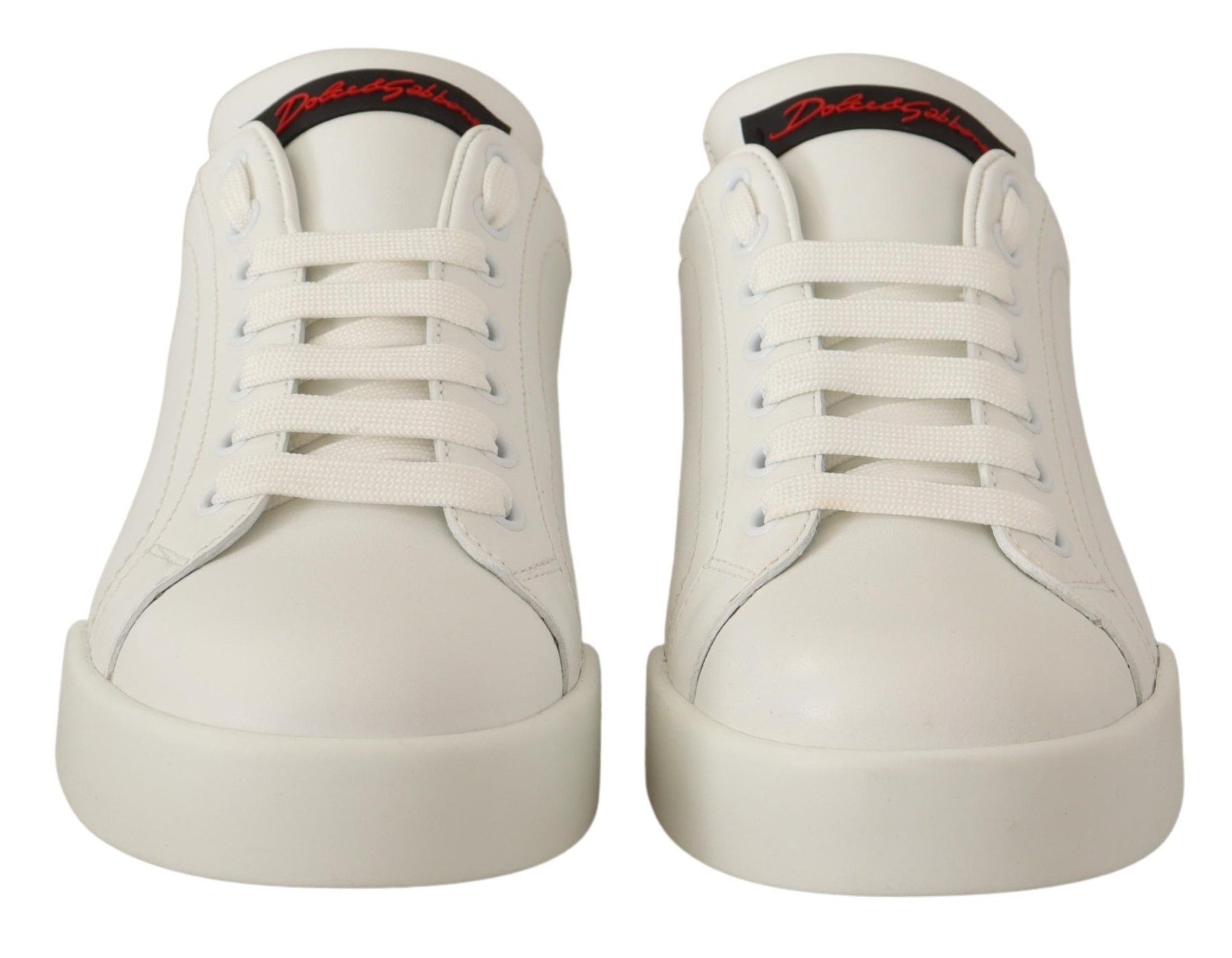 Step into unmatched style and comfort with these stunning Dolce & Gabbana sneakers, new with tags. Crafted from premium 100% leather, these sneakers showcase a classic white and red palette, complemented by flat laces and a rubber sole for optimal durability and grip. Inside, the luxury continues with a leather insole adorned with the brand’s logo on a label, affirming the sneakers’ authenticity and high-quality construction straight from Italy. As a symbol of exceptional craftsmanship, these sneakers promise to deliver both fashion-forward aesthetics and everyday functionality.