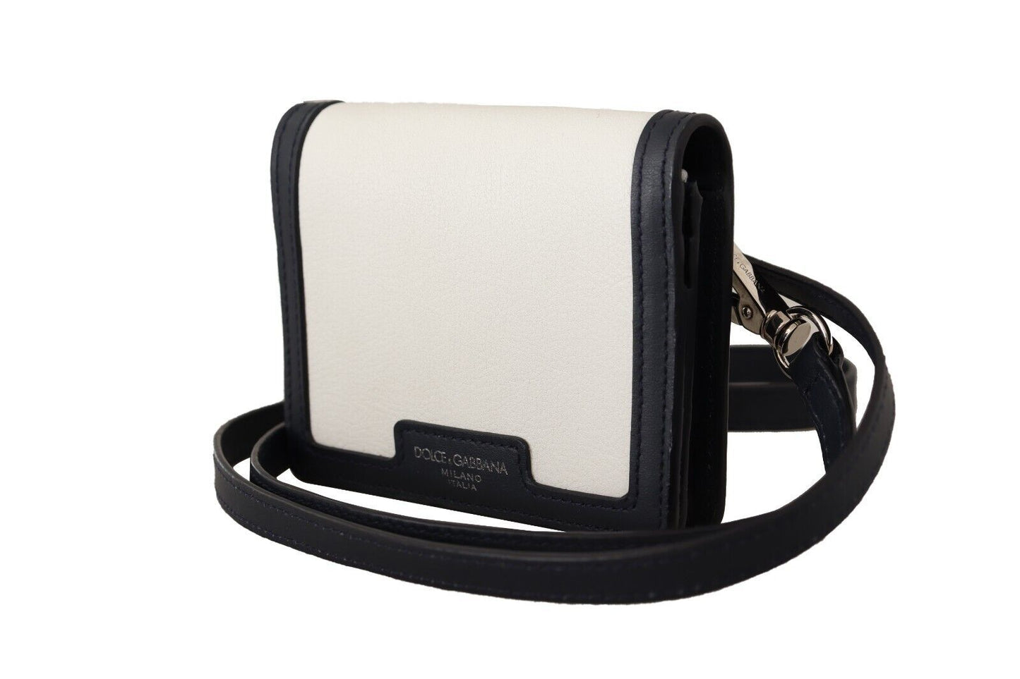 Discover the epitome of luxury with this stunning bifold wallet from the esteemed house of Dolce & Gabbana. Exquisitely crafted from 100% genuine leather, this piece is not just a wallet; it’s a statement of elegance and sophistication. Ideal for those who appreciate the finer things in life, it features a sleek white exterior, complemented by a practical shoulder strap and a secure flap closure for effortless style on the go. Perfect for adorning any outfit with a touch of Italian craftsmanship.