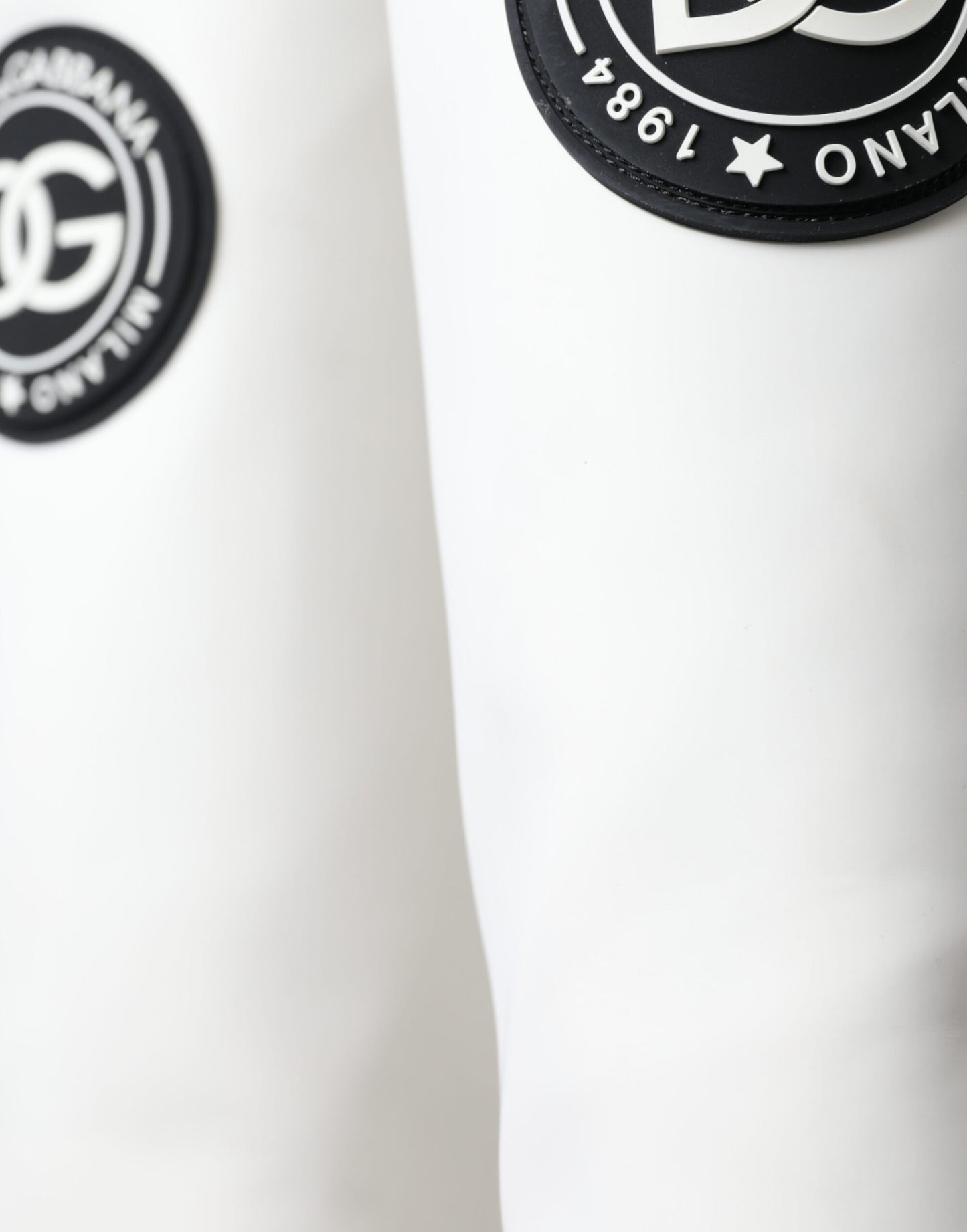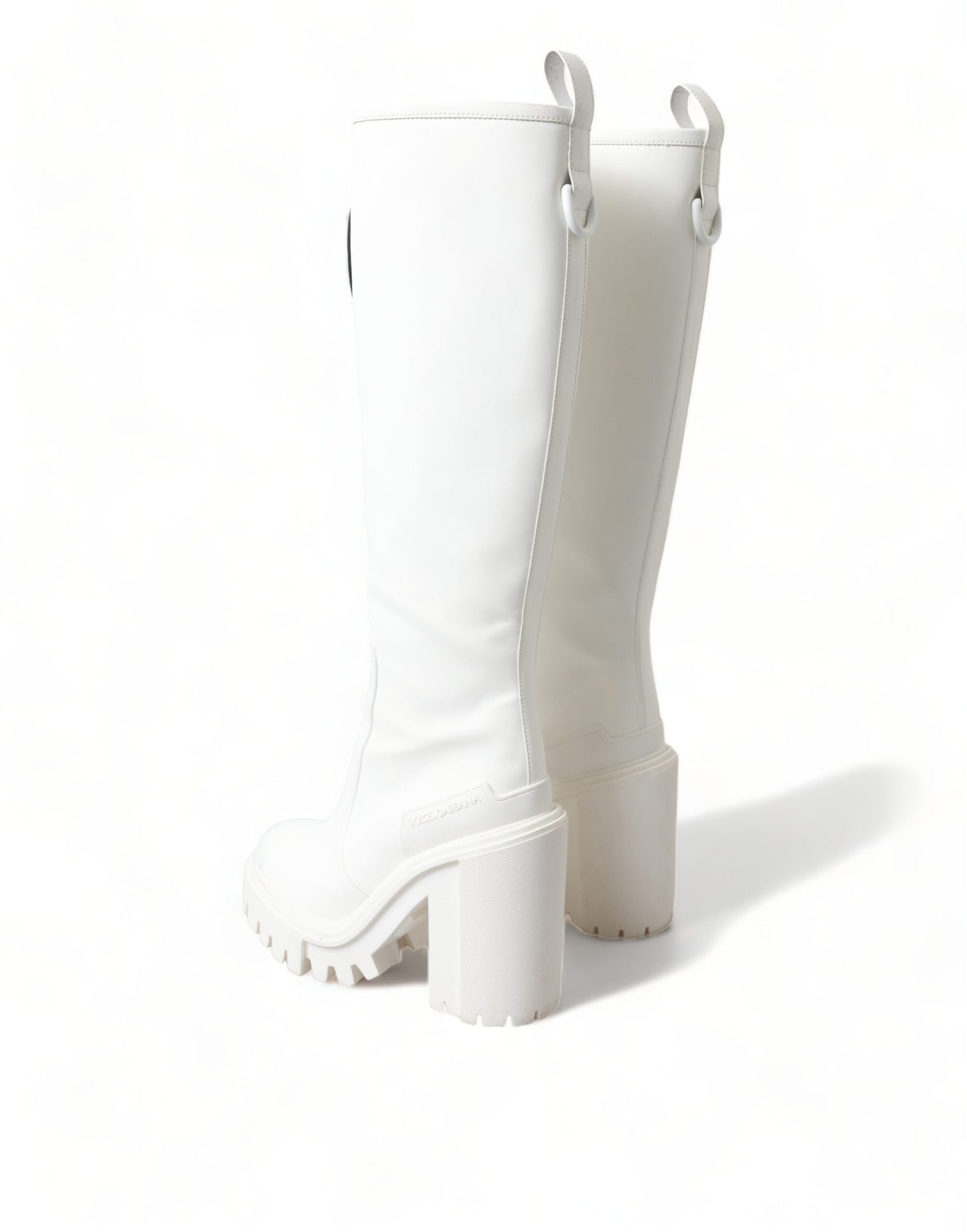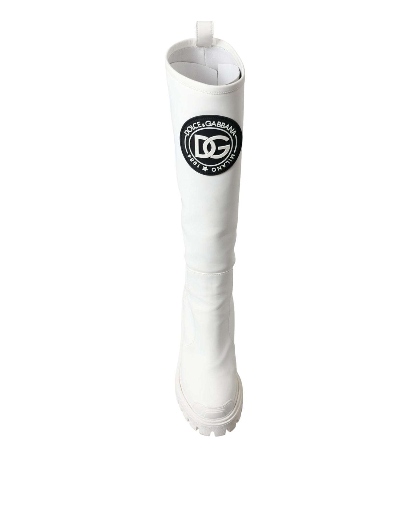 Step out in style with these stunning, brand new 100% Authentic Dolce & Gabbana trekking boots. Crafted from premium rubberized calfskin leather, these high-top boots offer both luxury and practicality, marrying high-quality craftsmanship with comfort. Designed in a chic white color, they feature a durable rubber sole, handy zip closure, and the unmistakable Dolce & Gabbana logo details. Perfect for those who demand both luxury and utility in their footwear. Made in Italy, these boots are a testament to timeless style and robust design.