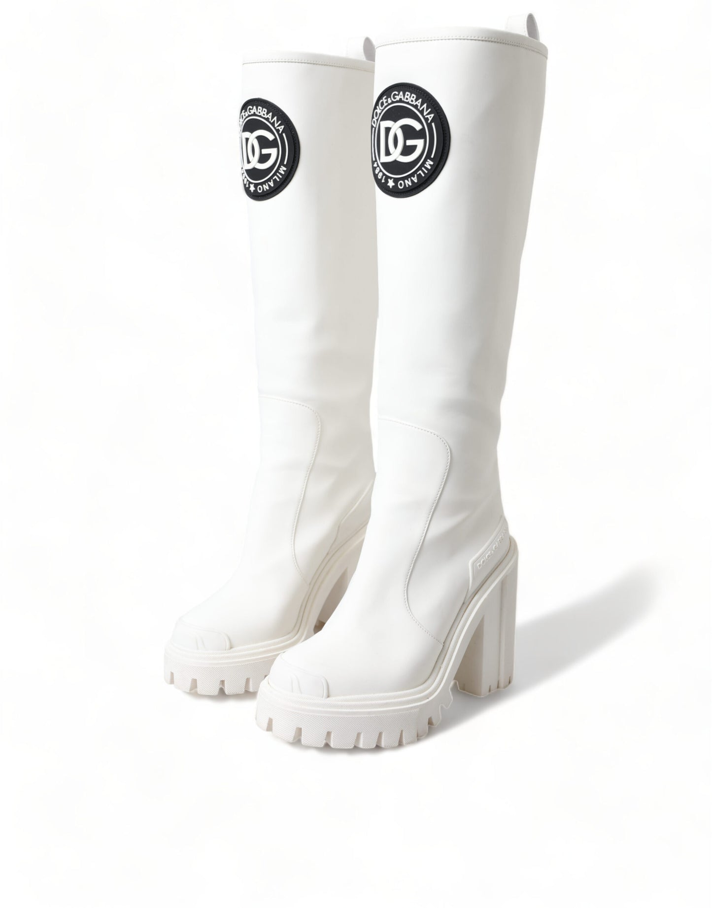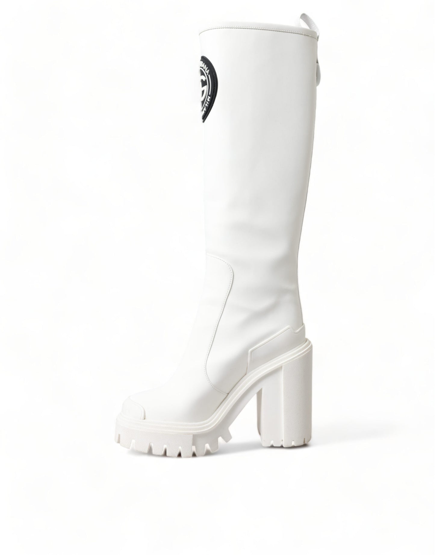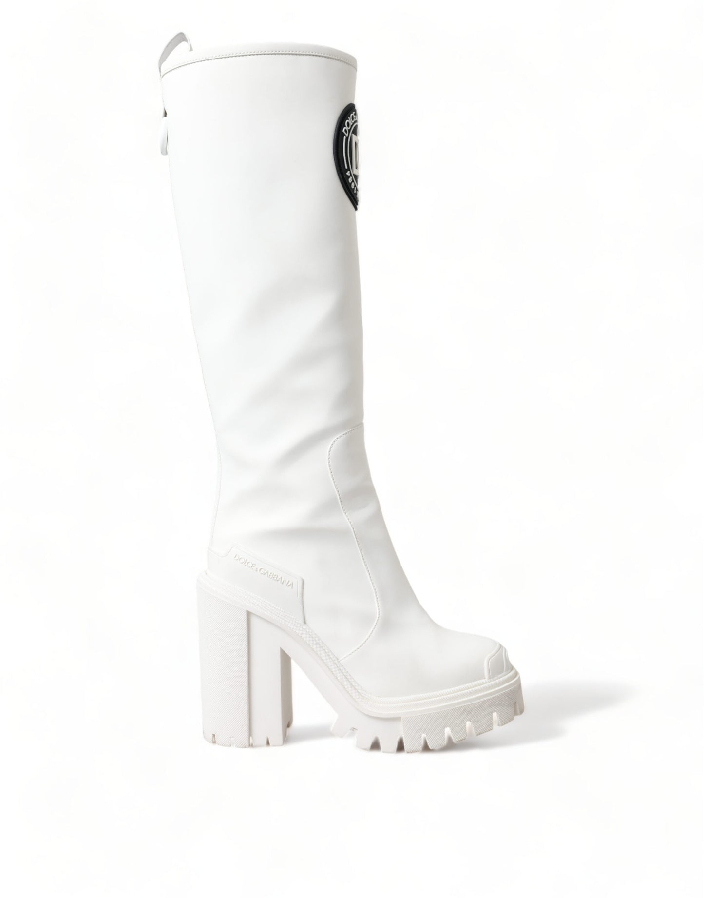 Step out in style with these stunning, brand new 100% Authentic Dolce & Gabbana trekking boots. Crafted from premium rubberized calfskin leather, these high-top boots offer both luxury and practicality, marrying high-quality craftsmanship with comfort. Designed in a chic white color, they feature a durable rubber sole, handy zip closure, and the unmistakable Dolce & Gabbana logo details. Perfect for those who demand both luxury and utility in their footwear. Made in Italy, these boots are a testament to timeless style and robust design.