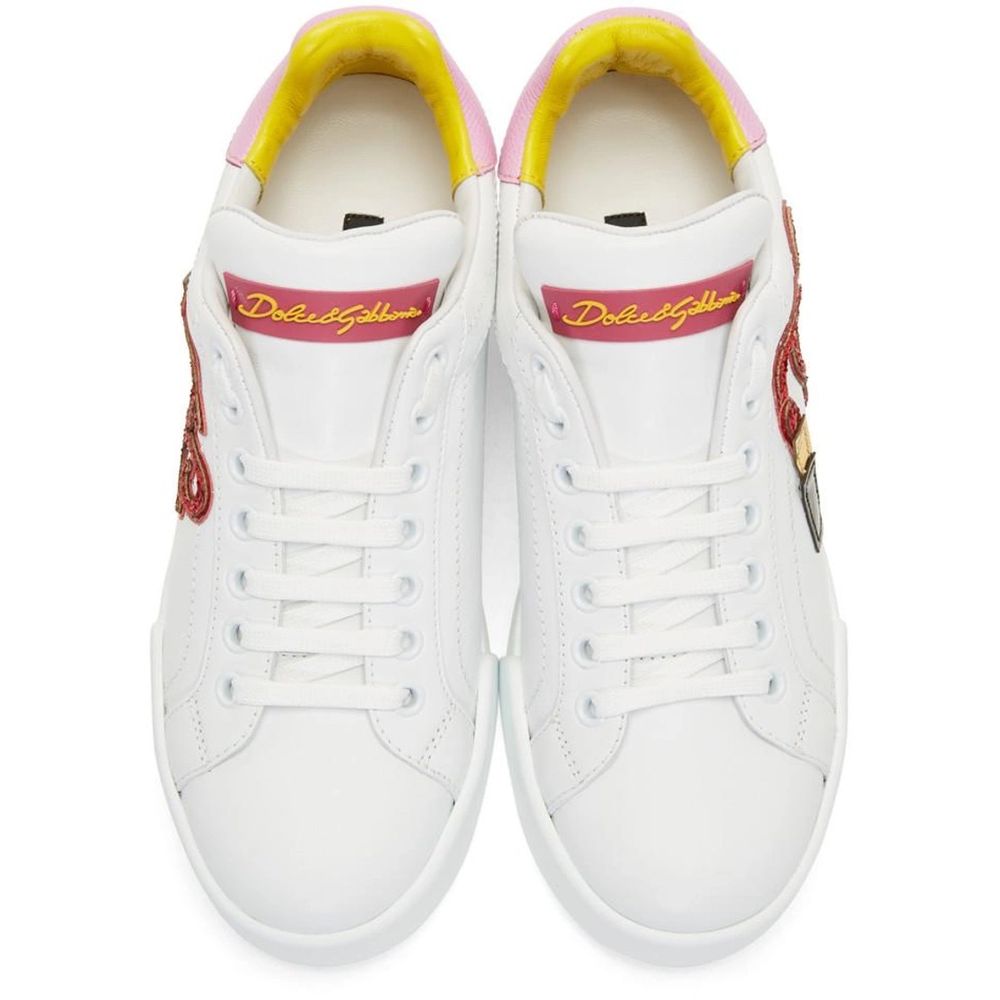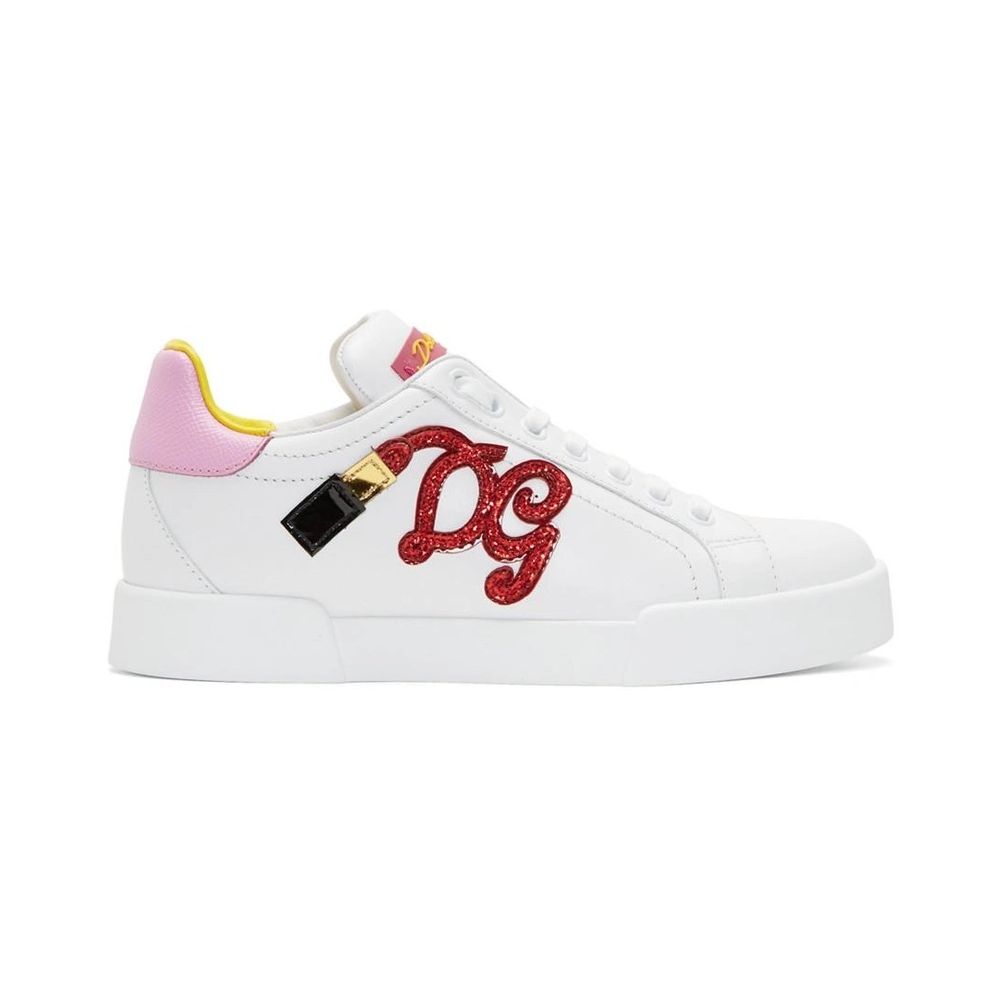 Step into luxury with these exquisitely crafted calfskin leather sneakers, featuring a delicate palette of white, pink, and yellow. Adorned with a chic patch on the side, these Italian-made shoes are the epitome of sophistication meets sporty style.