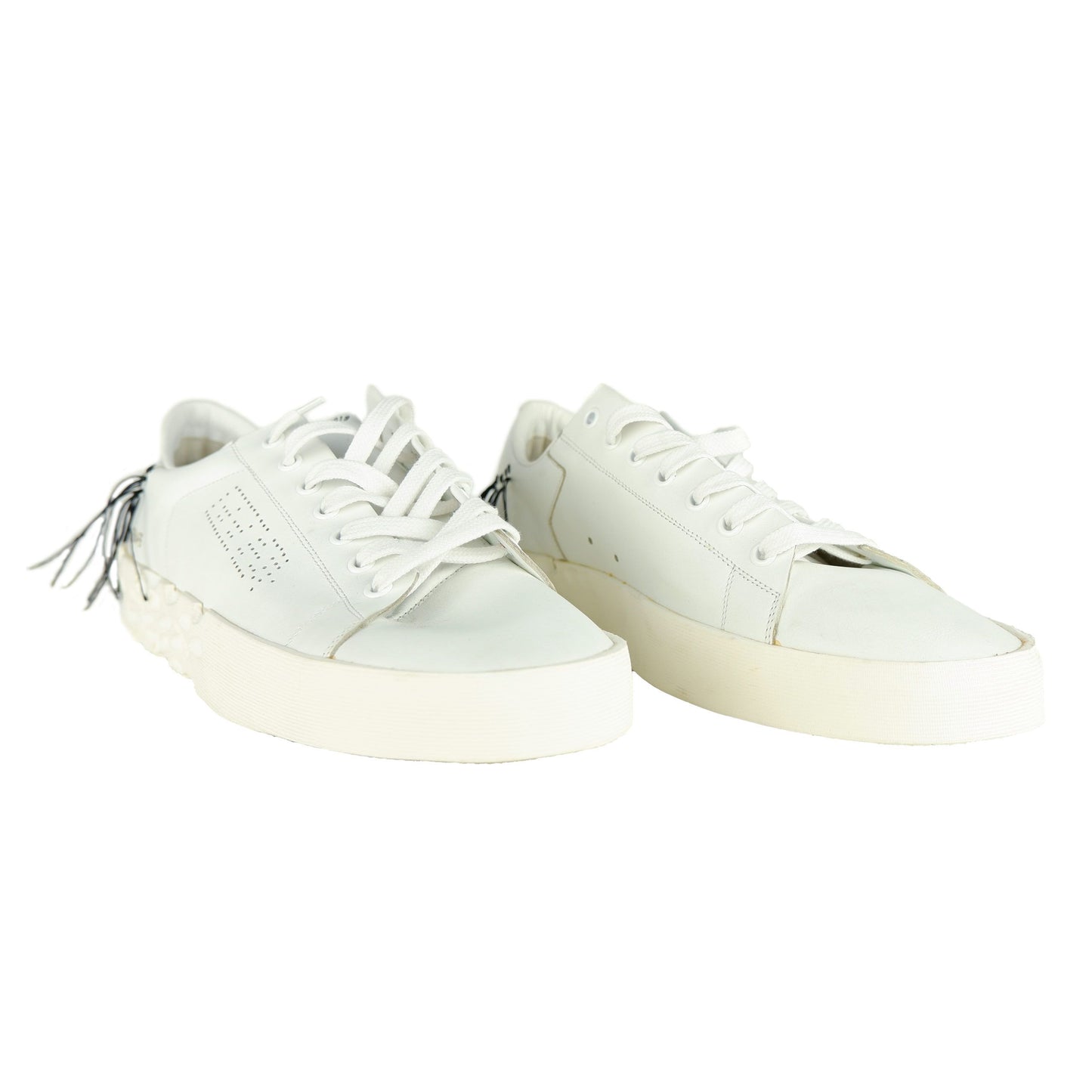 Step into luxury with these elegant white leather sneakers. Adorned with decorative threads on the heel and a chic logo print, these sneakers are the epitome of Italian craftsmanship. The supple 100% leather and durable rubber sole ensure both comfort and style. Perfect for sophisticated casual looks.