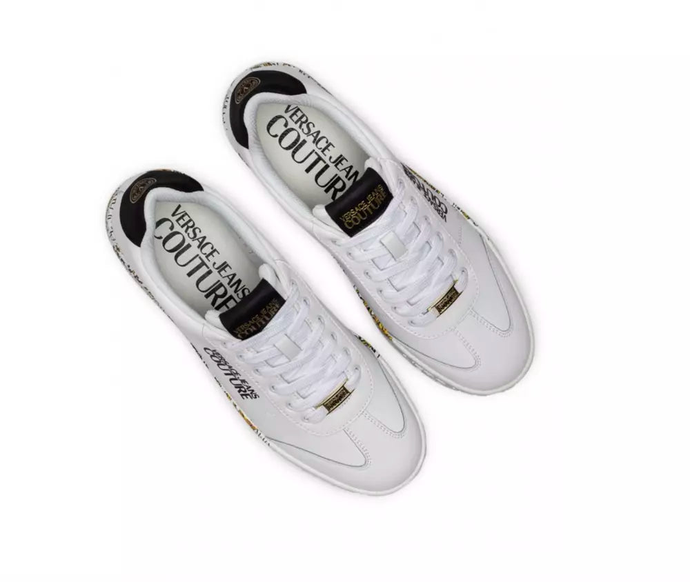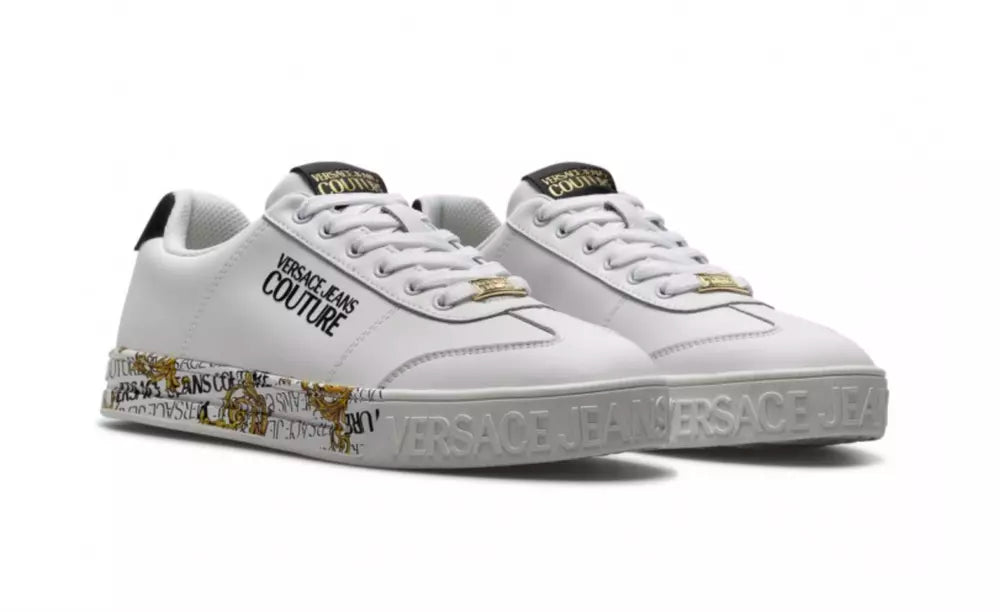 Elevate your style with these luxurious white leather sneakers, crafted for those who appreciate the finer details in footwear. The soft rubber sole promises unparalleled comfort underfoot, while the tasteful logo embellishments on the tongue and side showcase your flair for high-end fashion. Highlighting its uniqueness, a metal plaque adorns the laces, and the brand’s signature design is delicately imprinted across the sole, creating a statement with every step.