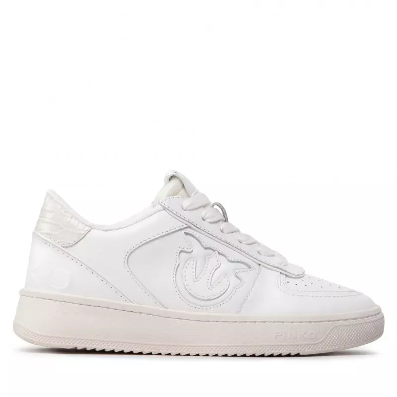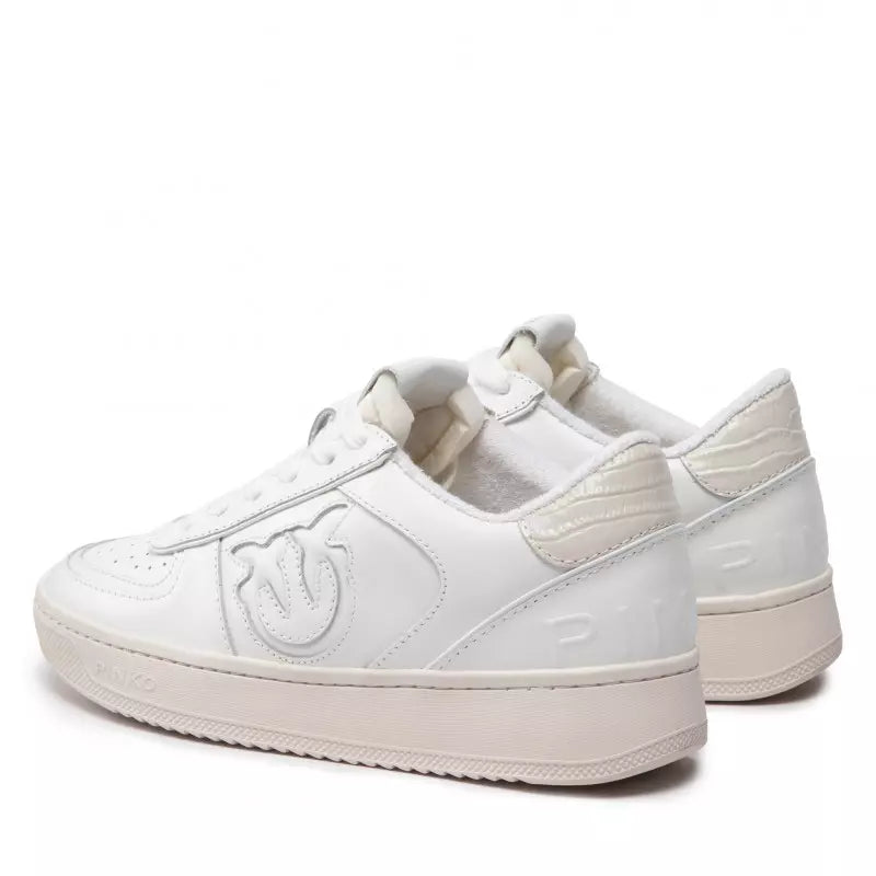 Chic White Calfskin Sneakers with Croco Detail